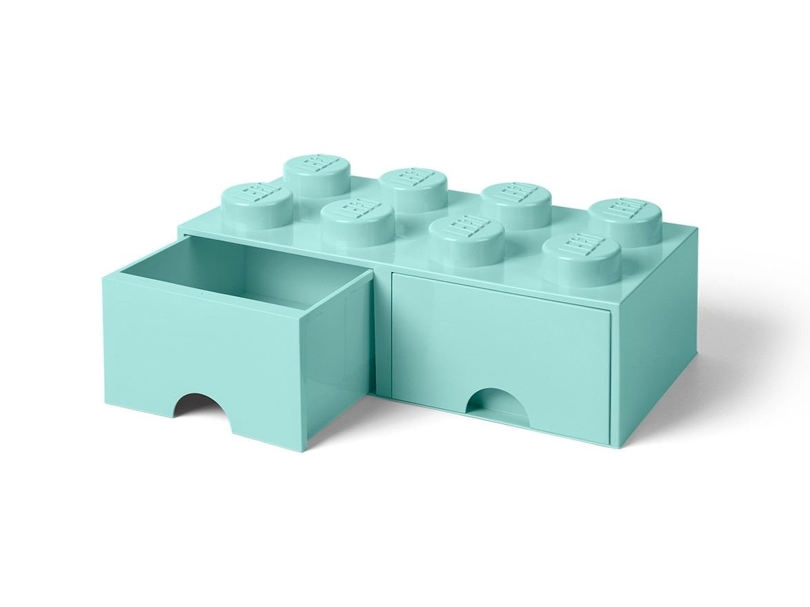 Järjestä tavarasi tyylillä tähän LEGO® 8-nuppiseen säilytyslaatikkoon. Kestävästä muovista valmistetussa säilytysratkaisussa on kaksi vetolaatikkoa esimerkiksi LEGO palikoiden (eivät sisälly mukaan), lelujen, kylpyhuoneen pikkutavaroiden, toimistotarvikkeiden tai muiden pikkuesineiden säilytykseen. Pinottavista laatikoista on saatavilla useita eri värivaihtoehtoja (myydään erikseen), joten ne ovat kätevä ja värikäs täydennys kotisi sisustukseen. (Huomaa: Avaa laatikot vain, kun säilytysratkaisuon tasaisella alustalla, jotta säilytysratkaisu ei kaadu. Avatut vetolaatikot saattavat irrota, jos niistä ei pidä kiinni.)