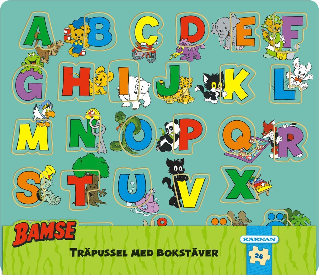 Bamse wooden puzzle / frame puzzle with letters. Raised pieces to fit in the right place.