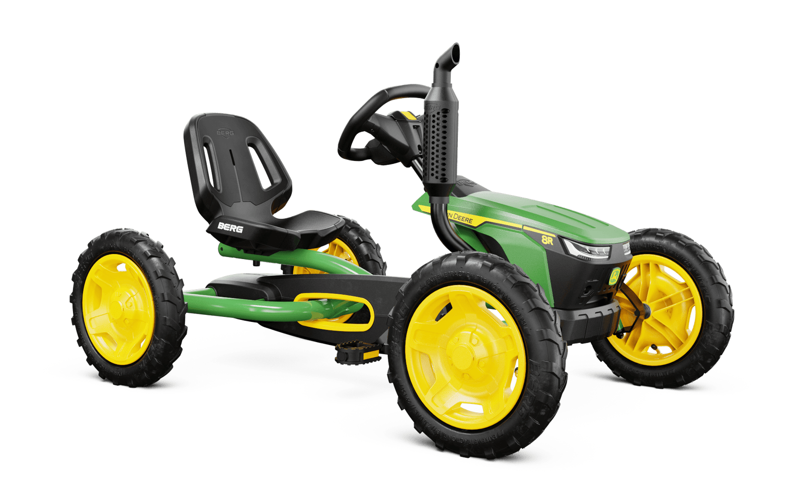 BERG Buddy John Deere Hyppää kyytiin ja koe maalaiselämän tunnelma BERG Buddy John Deerellä! Tämä vankka polkuauto on suunniteltu erityisesti 3–8-vuotiaille seikkailunhaluisille lapsille ja tarjoaa kaiken, mitä kunnon lasten polkuautolta odotetaan. Aito John Deere -ilme, järeä traktorityyli ja ikoninen vihreä väri varmistavat, että erotut aina joukosta. Tämä virallisesti lisensoitu John Deere -tuote on viimeistelty huolellisesti ja siinä on jopa kätevä säilytyslokero konepellin alla. Aja sitten pihalla tai tutki naapurustoa, tämän Buddy polkuauton kyydissä tunnet itsesi oikeaksi maanviljelijäksi. BERG Buddy alusta kasvaa lapsen mukana BERG Buddy John Deere kuuluu monipuoliseen BERG Buddy alustaan, joka on suunniteltu kasvamaan lapsen mukana. Säädettävä istuin, vahva runko ja älykäs BFR-järjestelmä takaavat pitkäkestoisen ja huolettoman ajonautinnon. Ajoitpa sitten kotipihalla tai lähdet retkelle puistoon, Buddy tarjoaa aina mukavuutta ja hyvän hallinnan. Ja lisävarusteiden, kuten peräkärryn tai soundboxin, avulla voit tehdä omasta Buddystasi täysin ainutlaatuisen. Miksi valita BERG Buddy John Deere? – Sopii 3–8-vuotiaille lapsille (100–130 cm) – Virallisesti lisensoitu John Deere -muotoilu – Huomiota herättävä traktorityyli ikonisessa vihreässä ja keltaisessa – Kätevä säilytyslokero konepellin alla – Mukava ja ergonominen – Ilmakumirenkaat hyvällä pidolla sulavaan ajamiseen – Ketteryys pienen kääntösäteen ansiosta – Tukeva ja vähähuoltoinen runko suojaavalla pinnoitteella – BFR-järjestelmä, polje, jarruta ja peruutta helposti – Säädettävä istuin, kasvaa lapsen mukana – Huolellisesti testattu – Laaja valikoima lisävarusteita polkuauton personointiin Turvallisuus ja mukavuus etusijalla Neljä tukevaa pyörää ja älykäs keinuvaksi takaavat Buddylle vakaan ja turvallisen ajokokemuksen myös epätasaisessa maastossa. Ilmakumirenkaat lisäävät ajomukavuutta ja vähentävät vierintävastusta, joten liikut vaivattomasti ja nopeasti. BFR-järjestelmän (Brake, Freewheel & Reverse) ansiosta voit jarruttaa ja peruuttaa polkimilla ilman, että tarvitsee nousta kyydistä, täydellinen ratkaisu kaikille alustoille ja jokaiseen seikkailuun. Oma Buddy, oma tyyli BERG Buddy on saatavilla useissa näyttävissä väreissä ja eri versioissa. Joissakin malleissa, kuten Buddy Crossissa, on vakiovarusteena Soundbox Race ohjauspyörässä, jossa on neljä hauskaa ääntä, kuten moottorin käynnistys, torvi ja kiihdytys. Muihin Buddy-malleihin tämä soundbox on saatavilla lisävarusteena. Personoi polkuautosi peräkärryllä, lipulla tai valoilla ja tee ulkoleikistä entistä hauskempaa ja turvallisempaa. Oletko valmis Buddy-seikkailuun? BERG, ulkoleikin asiantuntija jo yli 40 vuoden ajan Yli 40 vuoden kokemuksella BERG tietää tarkalleen, mitä lapset ja vanhemmat arvostavat, laatua, turvallisuutta ja leikin iloa. Kaikki polkuautomme valmistetaan korkealaatuisista ja lapsiystävällisistä materiaaleista ja testataan tiukimpien kansainvälisten standardien mukaisesti. Kun valitset BERGin, valitset huolettoman seikkailun.