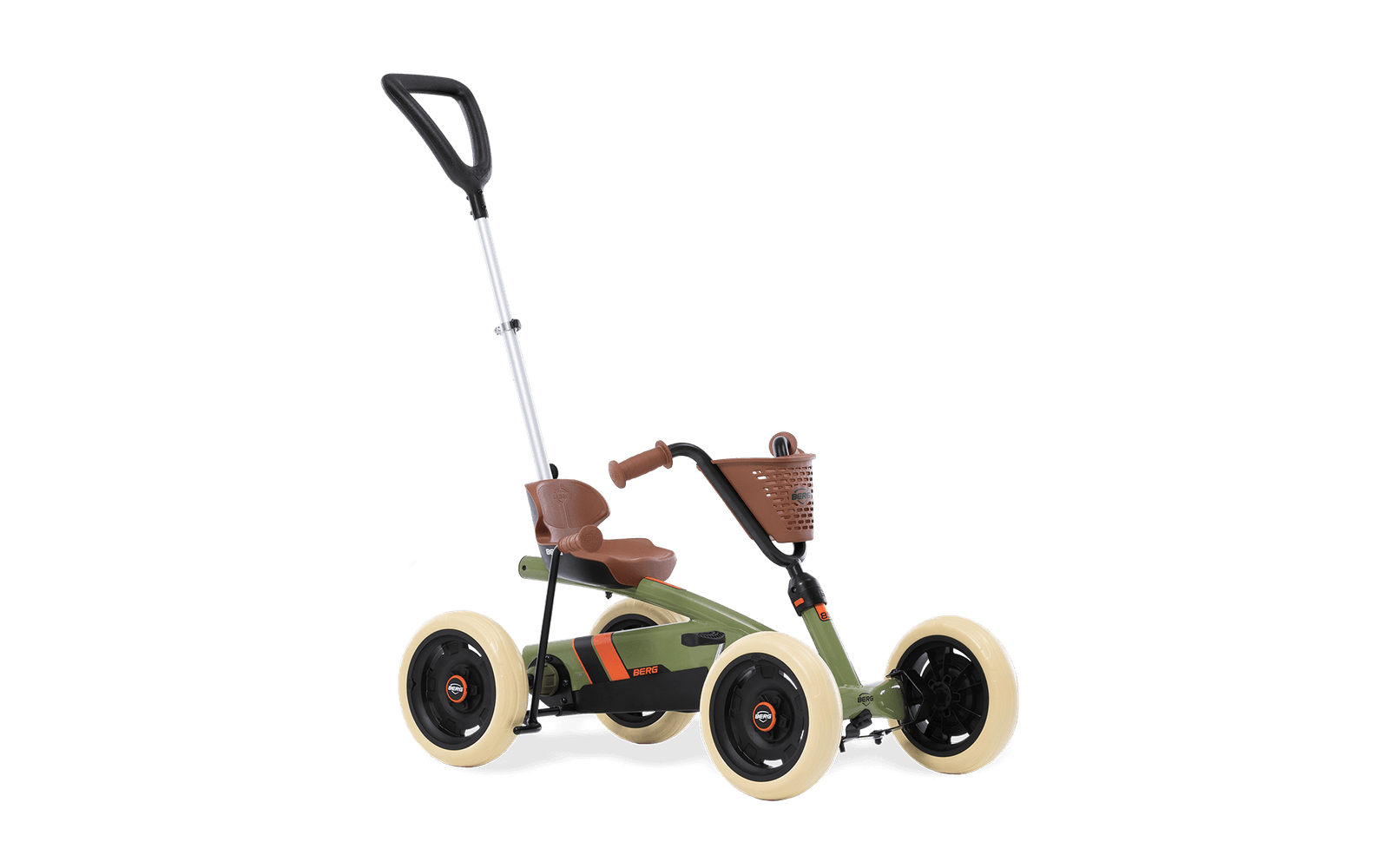 Me BERGillä haluamme inspiroida lapsia leikkimään ulkona. BERG-polkupyöräautolla sinulla on taatusti vuosien riemua ja ajat turvallisia kilometrejä. BERGiltä löydät laajan valikoiman polkuautoja, pikkulapsista aikuisiin, pienille ja suurille. Valikoimastamme löytyy kaikkea potkupyörästä polkimilla (alk. 10 kk) aina sähköpolkuautoihin (alk. 6 vuotta) saakka. BERG-polkupyöräautoja on saatavilla eri väreissä sekä pojille että tytöille. Meiltä löydät juuri sinulle sopivan polkuauton! Esimerkiksi BERG Buzzy 2-in-1 -mallisto sopii 2–5-vuotiaille lapsille ja siinä on vakiovarusteena työntöaisa. BERG-polkupyöräautojen edut * Yli 35 vuoden kokemus polkuautojen kehittämisestä * Lapsiystävällisten ja laadukkaiden materiaalien käyttö * Vastaa tiukimpia turvallisuusvaatimuksia Vaihdettava vapaaratas Vaihdettavan vapaarattaan ansiosta Buzzy 2-in-1 -työntöautoa voi käyttää kahdessa eri asennossa. ”Poljin”-asennossa lapsi voi ajaa itsenäisesti kuten tavallisella Buzzyllä. ”Työntö”-asennossa polkimet eivät pyöri, joten autoa voi työntää ilman että polkimet liikkuvat mukana. Siirtyminen näiden kahden asennon välillä käy helposti kääntämällä kampiakselin ympäri olevaa rengasta vasemmalle tai oikealle. Turvallinen ja vakaa Työntöauto on varustettu käyttäjäystävällisellä ohjauslukolla, jonka kytket päälle ja pois helposti. Kun ohjauslukkotoiminto on päällä, lapsi ei pysty ohjaamaan ja aikuinen pysyy hallinnassa kaikissa tilanteissa. Se tuo lisää turvallisuutta! Työntöaisan korkeuden säätö käy kätevästi kolmeen eri korkeuteen. Yhdistettynä mukavaan kädensijaan viet Buzzy 2-in-1 -auton helposti paikasta toiseen. Haluaisiko lapsesi mieluummin tutkia maailmaa itse? Silloin voit irrottaa työntöaisan nopeasti ja muuttaa työntöauton hauskaksi polkuautoksi! EVA-renkaat ja käsijarru Lisäturvaa tuo Buzzy 2-in-1 -auton käsijarru. Vedä käsijarrusta ja Buzzy pysähtyy salamannopeasti. EVA-rengas on valmistettu huipputeknisestä vaahtomateriaalista. Se on BERG Buzzylle ihanteellinen vaihtoehto perinteisille kumiulko- ja sisärenkaille. Sopivan koostumuksen ansiosta EVA-rengas on yhtä kestävä kuin perinteinen kumirengas, mutta se ei voi koskaan puhjeta. Lisävarusteet Täydennä oma Buzzy BERG-lisävarusteilla. Erottaudu liikenteessä vielä paremmin turvallisuuslipun avulla. Kuljeta tavarasi keltaisessa korissa, joka sopii Buzzy Nitro- ja Bloom-malleihin. Teet ulkoleikeistä hauskempia kärryn avulla, ja mukana tulevien tarrasarjojen ansiosta kärry sopii täydellisesti omaan Buzzyysi!
