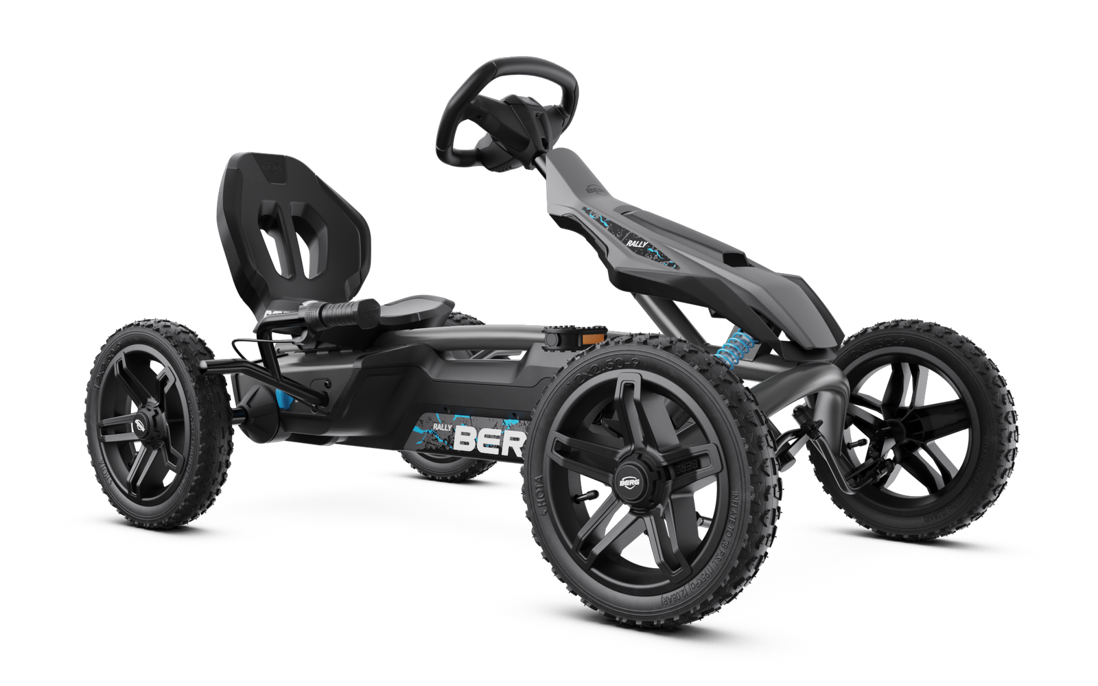 Saatat olla nuori, mutta haluat ehdottomasti pitää itse ohjaksia käsissäsi. Tiedät tarkalleen mitä haluat, ja se on vauhti. BERG Rally -mallistossamme sinulla on valinnanvaraa. Rohkea tai nopea, monissa eri väreissä. Valitsitpa minkä Rally-polkupyörän tahansa, kaikissa on ilmakumirenkaat, joten ne kulkevat aina nopeasti ja mukavasti. Rally kasvaa kanssasi yhtä nopeasti kuin sinä itse. Jokaisessa mallissa on houkuttelevia ominaisuuksia – oli haaveenasi sitten kilpailla maantiellä tai suunnata sorateille. Eri Rally-malleista löydät muun muassa siistit led-valot ja vilkut, soundboxin tai offroad-jousituksen. Mikä niistä sopii sinulle? Mukava ajo Mukavuus on etusijalla ilmakumirenkaiden ja heiluriakselin ansiosta. Helppo vaihtaa eteen- ja taaksepäin BFR-järjestelmällä. Käsijarru turvalliseen pysähtymiseen. Säädettävä istuin tekee Rallysta pitkäaikaisen ajokumppanin. LED-valot ja vilkut Huono tai pimeä sää? LED-valoilla ja vilkuilla näet paremmin ja näyt hyvin muille. Ne on vakiona asennettu Rally APX Blue-, Rally APX Red (3 vaihteella)- ja Jeep Rally Cherokee -malleihin. Soundbox Race Totta kai haluat ilmoittaa olevasi liikkeellä. Kaikissa Rally-malleissa – paitsi Rally NRG Orangen – on Soundbox Race, jossa on neljä erilaista kilpa-ajon ääntä. Iskua vaimentava offroad-jousitus Haluatko riehua maastossa? Rally DRT Green-, Rally DRT Yellow & Black (3 vaihteella)- ja Jeep Rally Cherokee -malleissa on iskunvaimentava offroad-jousitus. Mikään tai kukaan ei enää pysäytä sinua.