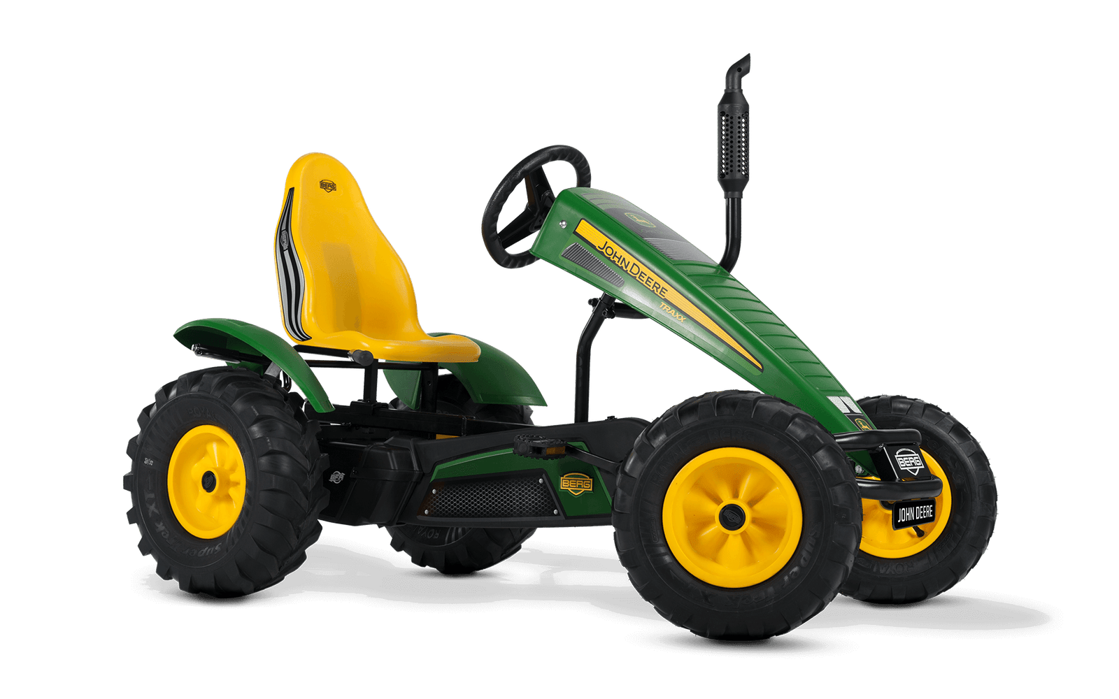 BERGillä haluamme innostaa lapsia ulkoilemaan. BERG-polkuautolla saat vuosien leikkiriemun ja ajat turvallisia kilometrejä. BERG on kehittänyt polkuautoja, joissa on suuri runko – XL-polkuauton. Tämä polkuauto sopii yli 5-vuotiaille lapsille. Suuren rungon ansiosta istuimen voi asettaa 6 eri asentoon. Näin istut aina täydellisessä asennossa ja teet mukavasti upeimmat liikkeet. XL-polkuautot kasvavat mukanasi, joten saat iloa vuosiksi! Säädettävän istuimen ansiosta polkuautot sopivat myös aikuisille. BERG XL polkuauton edut * Yli 35 vuoden kokemus ulkolelujen kehittämisestä * Lapsiystävällisten ja korkealaatuisten materiaalien käyttö * Istuimen säätäminen 6 eri asentoon * Mahdollisuus ajaa kahden henkilön voimin Runko 3 vaihteella Tässä polkuautossa on runko, jossa on BFR-järjestelmä ja 3 vaihdetta. Lyhenne BFR tulee sanoista Brake (jarru), Freewheel (vapaakytkin) ja Reverse (peruutus). BFR-järjestelmän ansiosta voit jarruttaa polkemalla, mutta myös ajaa heti pysähdyttyäsi taaksepäin. Kolmen vaihteen ansiosta pääset helpommin liikkeelle ja saavutat nopeammin korkeat vauhdit. Tällä järjestelmällä teet helposti ja turvallisesti kaveripiirin cooleimmat temput! Mukavaa ajoa BERG-polkuautoissa on useita ominaisuuksia, jotka takaavat erityisen mukavan ajon. Kaikissa polkuautoissa on neljä ilmakumipyörää. Ilmakumipyöristä saat lisää pitoa, ja ne tekevät ajosta miellyttävämpää. Lisäksi ne vähentävät vierintävastusta tavallisiin kumipyöriin verrattuna, joten pääset kovempaa. Keinutelin akselin ansiosta kaikki neljä rengasta koskettavat maata myös epätasaisessa maastossa. Neljän renkaan ansiosta polkuautolla on erinomainen vakaus. Helppo koota BERG-polkuautot on erittäin helppo koota. Taka-akselit asetetaan vasemmalle ja oikealle ketjusuojan runkoon. Tämä onnistuu ilman, että ketjusuojaa tarvitsee avata. Molemmilla puolilla olevat kaksi pulttia kiristetään paikoilleen. Vielä täytyy kiinnittää osa osista, kuten istuin, renkaat ja ohjaus, ja sitten polkuautosi on valmis! Tee polkuautostasi täydellinen BERG-polkuautovarusteilla. BERGin valosarjan ansiosta olet aina näkyvillä ja turvassa pimeällä. Paketti sopii kaikkiin isoihin polkuautoihin (yli 5-vuotiaille). BERGin etu- ja takahevitin tarjoaa loputtomasti mahdollisuuksia: voit kiinnittää BERG-lumenpuskimen, trukkipiikin tai nostokauhan. Näin voit leikkiä maatilalla ja työskennellä polkuautollasi! Isoihin polkuautoihin BERGillä on kolme erikokoista perävaunua: Trailer XL, Steel Trailer XL ja Tandem Trailer XL. Valitse omasi ja ota kaikki tavarasi mukaan seikkailuun! Kaikissa perävaunuissa on jopa kippitoiminto, joten työsi helpottuu entisestään. BERGin duo-istuimella saat lisämatkustajan (jopa 30 kg) mukaan kyytiin. Käsinojat tekevät matkustajan ajosta mukavamman. Huom: duo-istuinta ei voi käyttää yhdessä kaarituen kanssa. Polkuauton huolto Aivan kuten auto, myös polkuauto kaipaa huoltoa. Ehkä renkaat täytyy pumpata. Kiristä mahdolliset löysät ruuvit kunnolla. Kääntyykö ohjaus edelleen kevyesti? Toimiiko jarru edelleen hyvin? Silikonisprayllä saat jäykät osat taas liikkumaan. Säädä istuimesi helposti, kun olet kasvanut. Nyt BERG-polkuautosi on taas ajokunnossa!