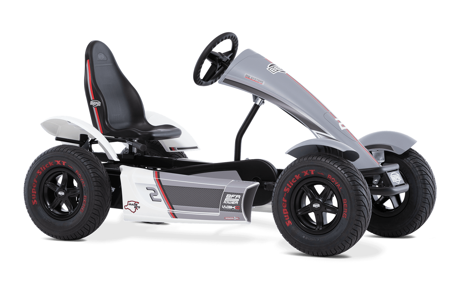 BERG:llä haluamme innostaa lapsia leikkimään ulkona. BERG-polkupyörällä voit olla varma vuosien leikkiriemusta ja ajella turvallisia kilometrejä. BERG on kehittänyt polkuautot, joissa on suuri runko, XL-polkupyörä. Tämä polkuauto sopii yli 5-vuotiaille lapsille. Koska runko on suuri, istuimen voi asettaa kuuteen eri asentoon. Näin löydät aina täydellisen ajoasennon ja voit tehdä mukavasti siisteimmät temput. XL-polkupyörät kasvavat mukanasi, joten iloa riittää vuosiksi! Säädettävän istuimen ansiosta nämä polkuautot sopivat myös aikuisille. BERG XL polkuauton plussat * Yli 35 vuoden kokemus ulkolelujen kehittämisestä * Käytössä korkealaatuiset ja lapsiystävälliset materiaalit * Istuimen säätö kuuteen eri asentoon * Mahdollisuus ajaa polkuautolla kahdestaan Vakiorunko Tässä polkuautossa on vakiokehys BFR-järjestelmällä. BFR tarkoittaa Brake (jarru), Freewheel (vapaaratas) ja Reverse (peruutus). BFR-järjestelmän ansiosta voit jarruttaa polkimilla sekä ajaa suoraan pysähdyksen jälkeen taaksepäin. Tämän järjestelmän avulla teet naapuruston siisteimmät temput helposti ja turvallisesti! Mukavaa ajoa BERG-polkupyörissä on useita ominaisuuksia, jotka tekevät ajosta erityisen mukavaa. Ensinnäkin kaikissa polkuautoissa on neljä ilmakumipyörää. Ilmakumipyörät antavat paremman pidon tiellä ja tekevät ajosta miellyttävämpää. Ne myös vähentävät vierintävastusta kiinteisiin renkaisiin verrattuna, joten voit ajaa kovempaa. Polkuauton heiluriakseli pitää kaikki neljä pyörää maan pinnalla myös epätasaisella maalla. Neljän pyörän ansiosta polkuauto on erittäin vakaa. Helppo koota BERG-polkupyörien kokoaminen on todella helppoa. Taka-akselit tulee laittaa vasemmalle ja oikealle ketjunkotelon rungon sisään. Tämä onnistuu ilman, että ketjunkoteloa tarvitsee avata. Molemmin puolin olevat kaksi pulttia tulee kiristää. Istuimen, renkaat ja ohjauspyörän kiinnität vielä paikoilleen ja polkuautosi on valmis! Tee polkuautostasi täydellinen BERG-polkupyörän lisävarusteilla. BERG-valosarjan avulla näyt aina pimeässä ja liikut turvallisesti. Tämä sarja sopii kaikkiin suuriin polkuautoihin (yli 5-vuotiaille). BERG-nostolaite edessä ja takana tarjoaa loputtomia mahdollisuuksia: voit kiinnittää siihen BERG-lumenpuskimen, trukkipiikit tai nostokauhan. Näin voit työskennellä polkuautollasi jopa maatilalla! Suuriin polkuautoihin BERG tarjoaa 3 eri kokoista peräkärryä: Trailer XL, Steel Trailer XL ja Tandem Trailer XL. Valitse sopiva koko ja ota kaikki tavarat mukaan seikkailuun! Peräkärryissä on myös kippitoiminto, joten jokainen työ sujuu helposti. BERG-duoistuimella voit ottaa kaverin (paino max 30 kg) mukaan polkuauton kyytiin. Käsinojat tekevät matkasta mukavan matkustajalle. Huomio: duoistuinta ei voi käyttää yhdessä turvakaaren kanssa. Polkuauton huolto Aivan kuten auto, myös polkuauto tarvitsee huoltoa. Ehkä renkaat pitää pumpata. Kiristä kaikki mahdolliset löysät ruuvit. Kääntyykö ohjaus vielä helposti kaikkiin suuntiin? Toimiiko jarru edelleen hyvin? Silikoonisuihkeella saat jäykät osat jälleen liikkumaan. Säädä istuintasi helposti, kun olet kasvanut. Nyt BERG-polkupyöräsi on taas ajokunnossa!