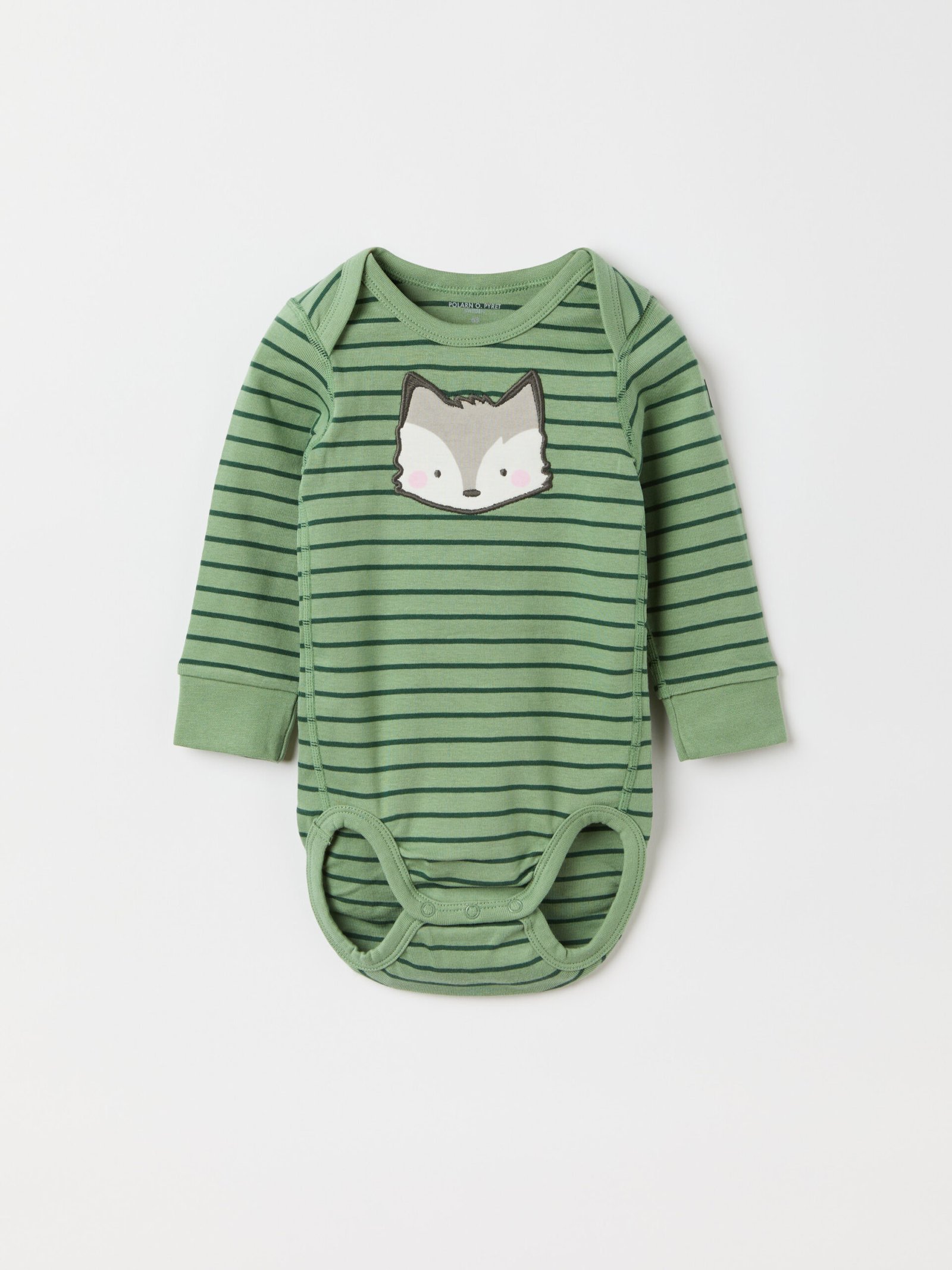 Bodyn etukappaleessa on suden kasvot. Kietaisumalliset olkapäät helpottavat pukemista vauvan pään yli. Pehmeä resori hihansuissa.
