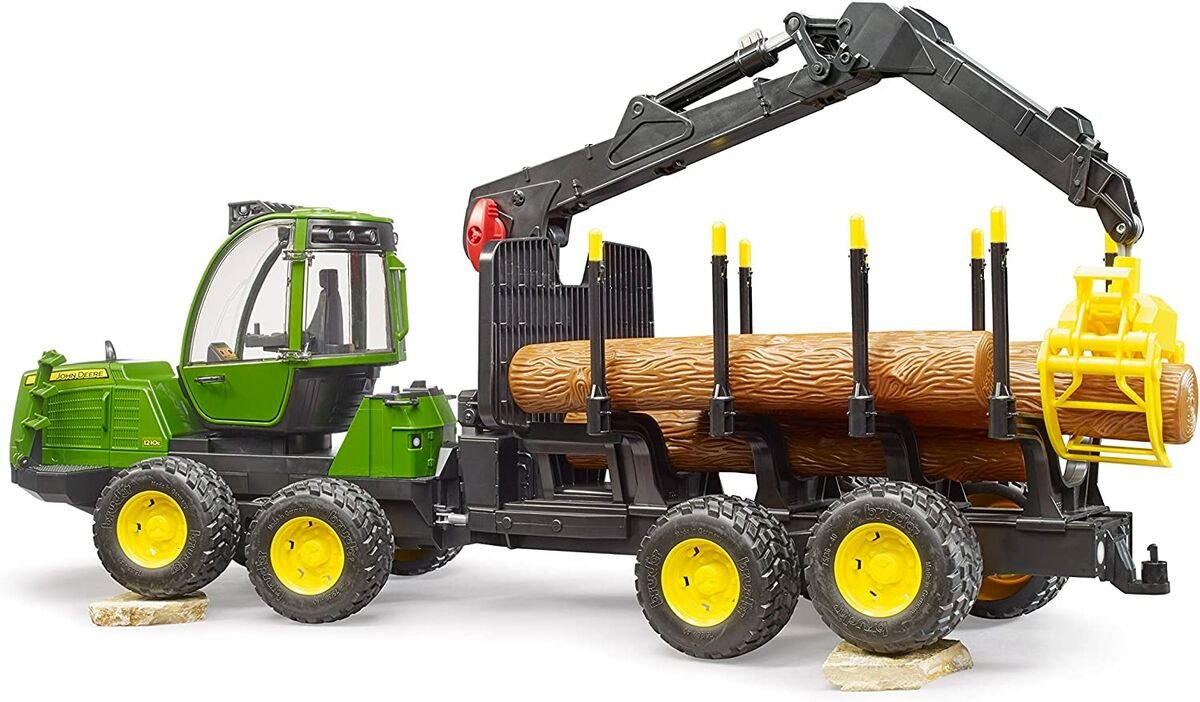 Tämä kuormatraktori sopii erinomaisesti puunrunkojen kuljettamiseen haastavassa maastossa. Siinä on pyörivä ja kääntyvä kuormain, jossa on automaattisesti sulkeutuva kahva, 360 asteen pyörivä ohjaamo sekä erikoisakselit. Pakkaus sisältää 1 kuormatraktorin kuormaimella ja 4 puunrunkoa. Koko: 64 x 16,4 x 22,5 cmMittakaava: 1:16Sopii yli 4-vuotiaille