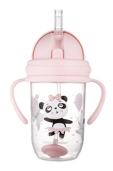 CANPOL Tippumaton muki pillillä ja mittakupilla Exotic Animals 270ml PINKKI