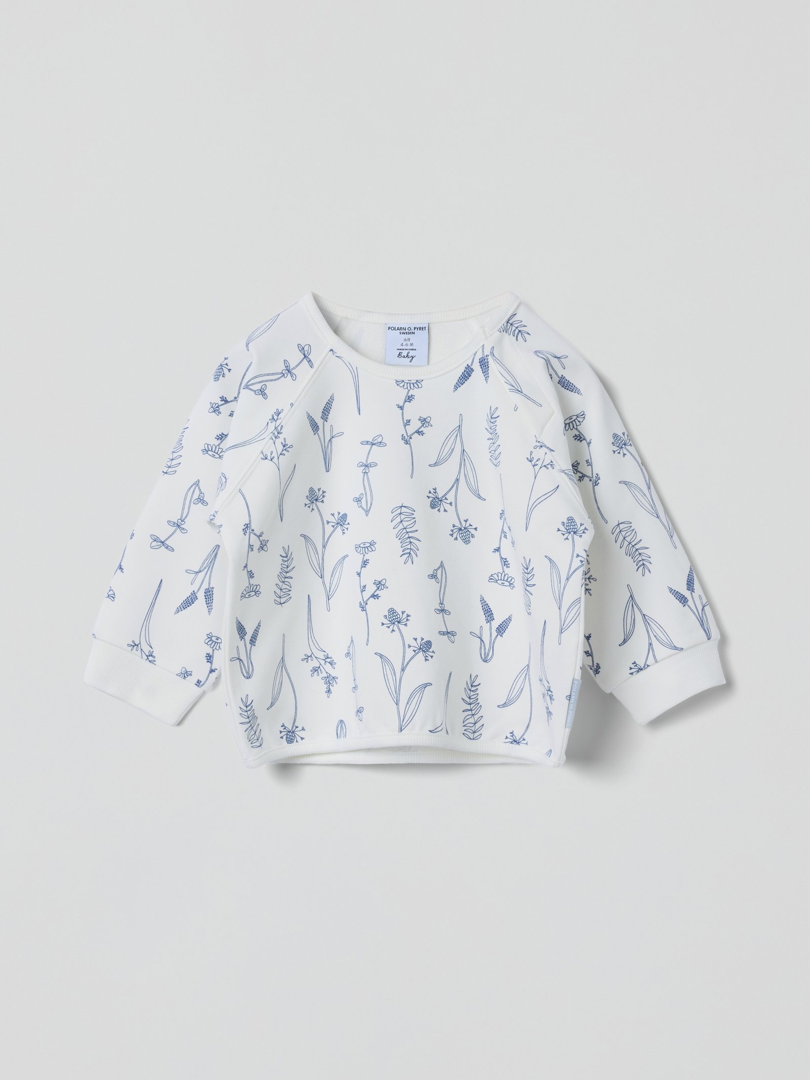 Vauvan väljä collegepaita 100 % luomupuuvillaa. Paita on kuvioitu kokonaan kukkakuviolla. Pehmeät resorit hihansuissa takaavat hyvän istuvuuden.