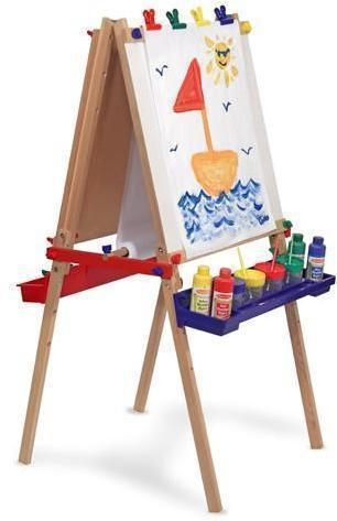 Valmiina luovuudelle! Seisova kaksipuolinen piirustustaulu soveltuu piirtämiseen, kirjoittamiseen tai maalaamiseen niin lapsille kuin aikuisillekin. Runsaasti tilaa kaikelle luovuudelle ja leikille. Toisella puolella liitutaulu, johon voit piirtää liidulla, ja toisella puolella paperia