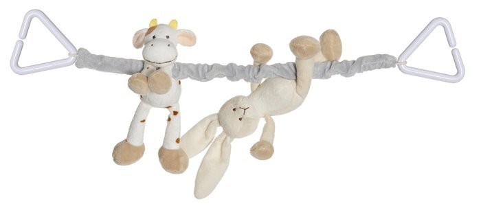 Söpö rattaiden riipus Teddykompaniet. Helppo asentaa vaunuun painamalla kiinnikkeet avokattuun. Jousitus on joustava, joten se sopii useimpiin vaunuihin. Vaunujen riipuksen iloinen Diinglisar stimuloi näköä ja sisäänrakennettu helistin viihdyttää lasta.