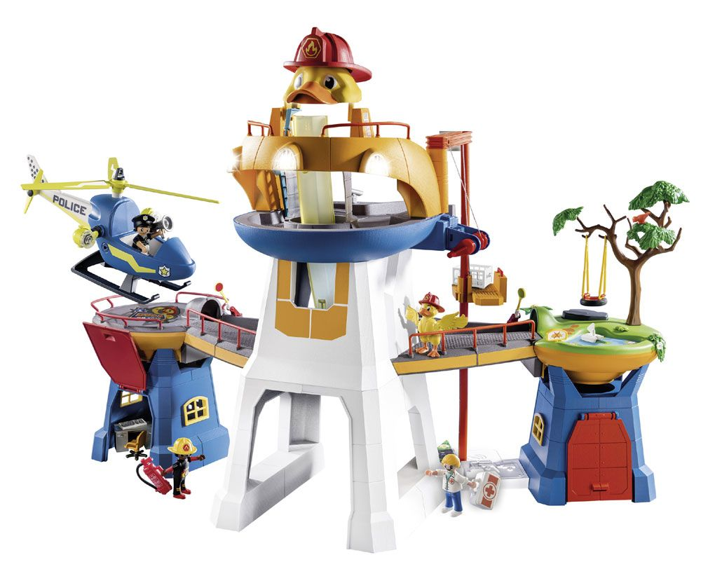 DOC-päämaja Playmobililta on jännittävä leikkirakennus, joka kuuluu Duck on call -sarjaan. Tämän tuotteen avulla lapset voivat ottaa neljän sankarihahmon -Ducklasin, Freddy Firen, Polly Poliisin ja Mikey Medicin – roolin ja lähteä Playmovillen missionsaattueille.DOC-päämaja on toimintakeskus, jossa neljä sankaria voivat kokoontua ja koordinoida tehtäviään. Rakennuksessa on neljä pelitasoa ja se on 31 tuumaa leveä ja 23 tuumaa korkea, joten tilaa on runsaasti luovaan leikkiin. Kun hälytys soi, Ducklas, Freddy, Polly ja Mikey ovat valmiita hälytykselle. Freddy voi hypätä vapaan pudotuksen liukumäkeen, Polly voi käyttää nostettavaa palleronostinta ja leijua Puolihelikopterin sisään, kun taas Mikey voi ohjata toimintaa salaisesta komentokeskuksesta pienessä tornissa.DOC-päämajaan kuuluu kaikki neljä D*O*C-sankaria ja paljon tarvikkeita, mukaan lukien liukumäki, heilurihissi, laskeutumispaikka ja ylimääräinen Puolihelikopteri. Onnistuneen tehtävän jälkeen lapset voivat rentoutua leikkipaikalla keinussa ja lampessa.Rakennus on yksityiskohtaisesti suunniteltu ja se antaa lapsille mahdollisuuden luoda jännittäviä tarinoita sankareista ja pelastusoperaatioista. DOC-päämaja on täydellinen lahja lapsille, jotka rakastavat leikkiä ja tutkia mielikuvitusmaailmoja. Playmobilin avulla lapset voivat löytää luovan leikin ja hauskan maailman.