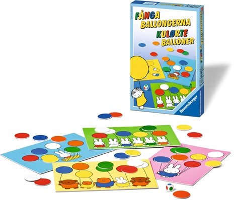 Spelet lär också barnen att särskilja och att namnge sex olika färger. Illustrationerna är gjorda av Dick Bruna.