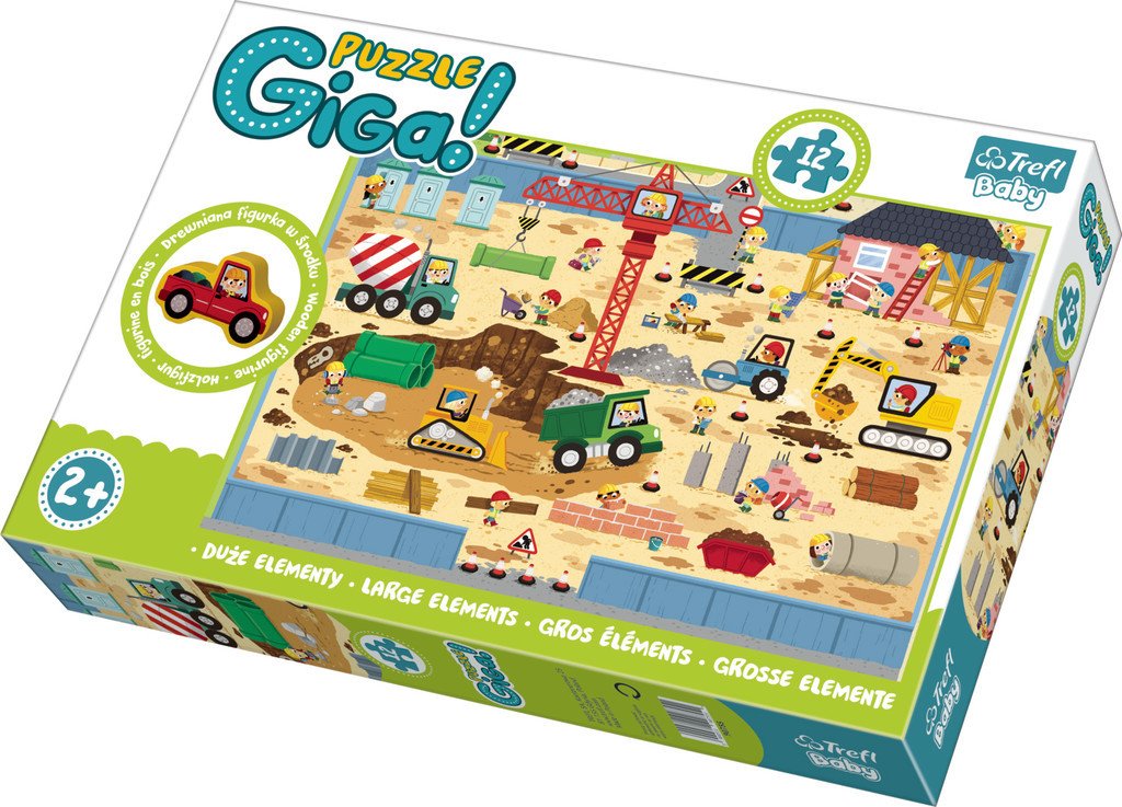 Trefl puzzle, Giga puzzle, with large pieces that when you build it together looks like a construction site on which you can play with the included wooden figure.