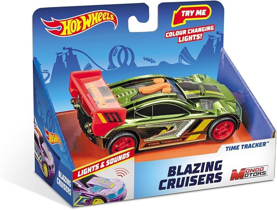 Hot Wheels Blazing Cruiser on siisti auto, jossa on ääni ja valo! Auton katolla on kolme painiketta. Paina niitä, niin saat hauskoja ääniä ja vilkkuvia valoja.
