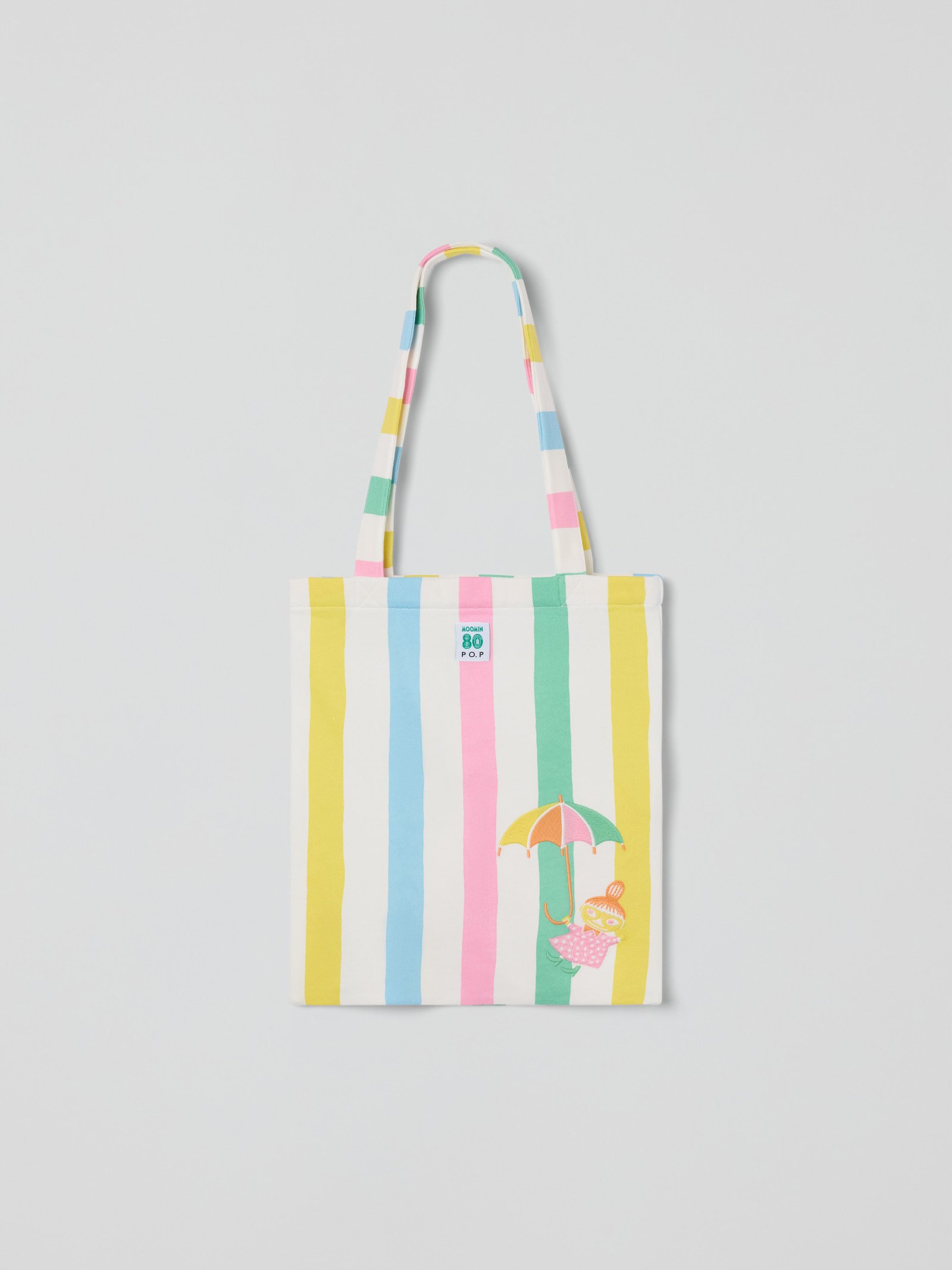 Kangaspussi ohutta collegemateriaalia. 100 % luomupuuvillaa. Pitkäikäinen, kätevä ja monipuolinen laukku! Raidallinen kangaspussi on koristeltu Tove Janssonin muumitarinoiden hahmoilla.