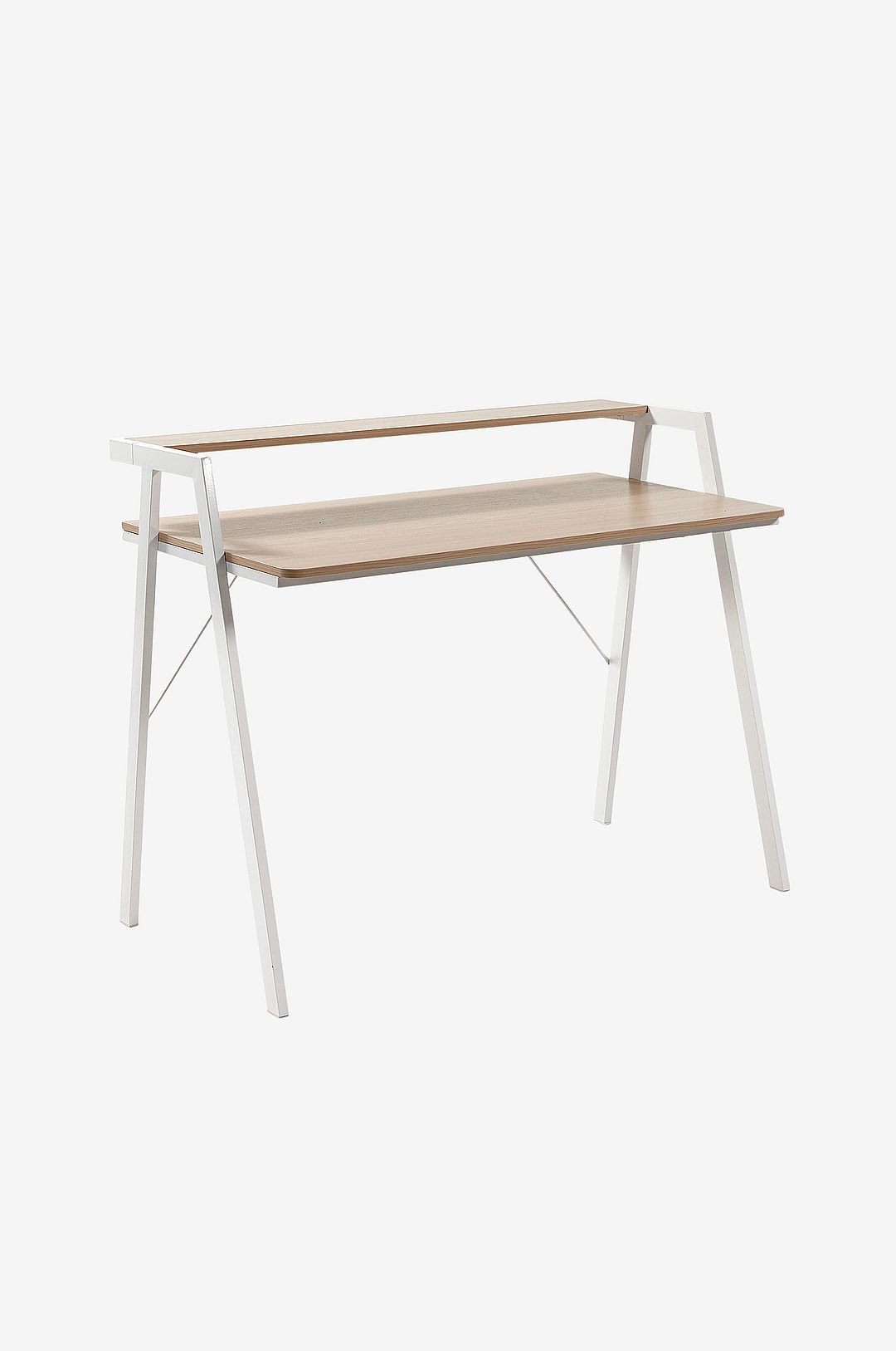Aarhus-kirjoituspöytä, jossa teräsrunko ja luonnonvärinen, puuta muistuttava pöytälevy ja hylly. Saman levyinen hyllytaso, jossa on tilaa kaikille kirjoitustarvikkeille. Työskentele kovasti, elä täysillä. Leveys: 115 cm. Syvyys: 60 cm. Korkeus: 91 ... Lue lisää
