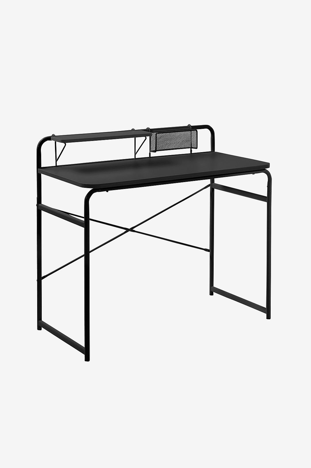 Foreman-kirjoituspöytä, jossa teräsrunko ja pöytälevy. Lisäksi hyllytaso kirjoitustarvikkeille ja lokero kirjekuorille tai viestilapuille. Leveys: 98 cm. Syvyys: 46 cm. Korkeus: 89 cm.