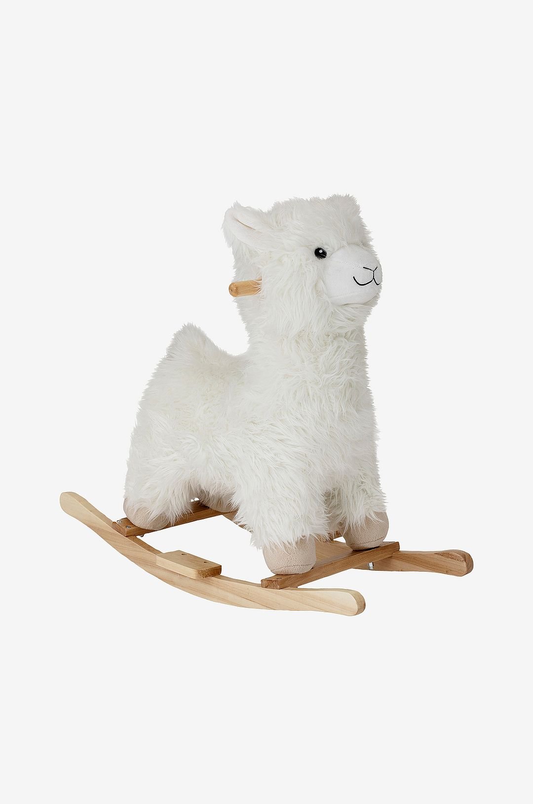 Bloomingville Mini. Keinulaama polyesteriä ja puuta. Mitat: Korkeus 45, pituus 65 ja leveys 25 cm.