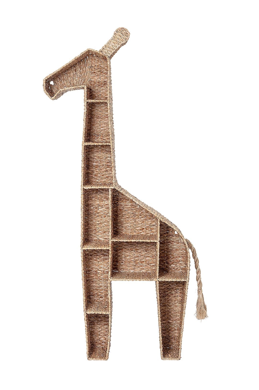 Bloomingville Mini. Kirjahylly, jossa luonnonpunosta ja metallirunko. Kirahvin muotoinen. Mitat: korkeus 148 cm, leveys 46 cm, syvyys 25,5 cm.