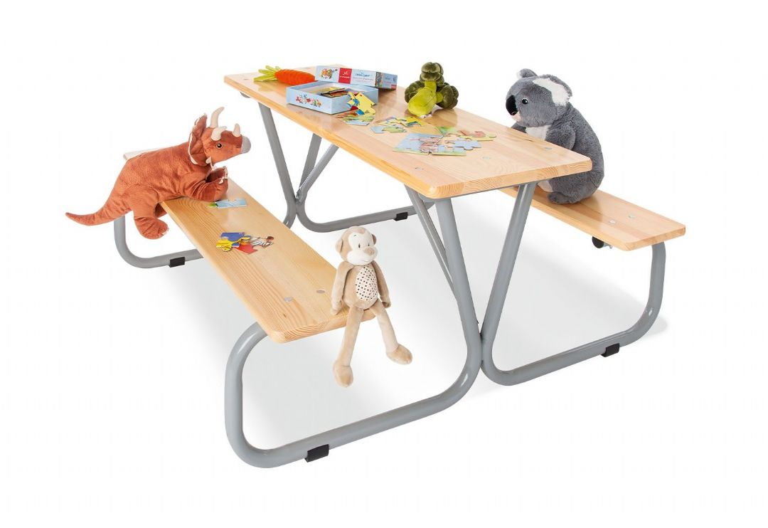 Penkki 6 hengelle, nimeltään Michel, Pinolinolta on täydellinen ratkaisu viihtyisään piknikiin perheen ja ystävien kanssa! Tämä penkki on korkealaatuinen ja suunniteltu täyttämään jokaisen lapsen vaatimukset kestävyydestä, toimivuudesta ja esteettisyydestä piknik-penkillä.Se on valmistettu täysin massiivisesta männystä kirkkaalla lakalla ja metallirungolla, jossa on harmaa lakkapinnoite. Tämä yhdistelmä materiaaleja ja värejä antaa yksinkertaisen, mutta elegantin ulkoasun, joka sopii mihin tahansa puutarhaan tai piknik-alueeseen.Jokainen penkki voi majoittaa kolme pientä tai kaksi suurta lasta ja pöydän koko antaa runsaasti tilaa ruoalle, juomalle ja muille tarvikkeille. Istuimen korkeus on 32 cm, mikä tekee siitä ihanteellisen lapsille 3 vuoden iästä ylöspäin.Penkki on erittäin kestävä ja sopii sekä ulko- että sisätiloihin käyttöön. Se on helppo pitää puhtaana ja vaatii vähän huoltoa, mikä tekee siitä ihanteellisen ratkaisun kotiin, päiväkotiin tai kouluun.Piknik-penkki ei ole vain tapa nauttia ulkona ateriasta, vaan se voi myös kehittää lasten kykyä kommunikoida, yhteistyötä ja jakamista ystävien ja perheen kanssa. Se on loistava tapa luoda vahvoja suhteita ja edistää terveellistä elämäntapaa lapsille.Kaiken kaikkiaan Penkki 6 hengelle, Michel, Pinolinolta on monipuolinen ja kestävä lelu lapsille, joka kannustaa heitä luomaan vahvoja suhteita ja nauttimaan terveellisestä ulkoilmakokemuksesta.