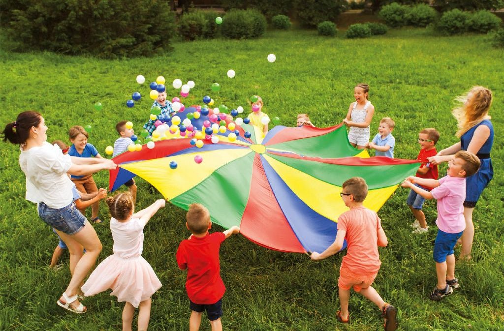 Outdoor Play -laskuvarjopeli palloilla on hauska ja opettavainen ulkoleikki, joka korostaa yhteistyötä ja tiimityötä. Pelaajat toimivat yhdessä pitäen pallot liikkeessä laskuvarjon päällä ilman, että ne putoavat. Tavoitteena on olla ensimmäinen joukkue, joka saa kaikki omat pallonsa keskellä olevasta reiästä läpi. Peliä voi pelata jopa 12 pelaajaa, joten se sopii erinomaisesti ryhmäleikkeihin ja pihapeleihin. Sisältö: 1 laskuvarjo (halkaisija 300 cm) 24 värikästä palloa Ikäsuositus: 5 vuotta +