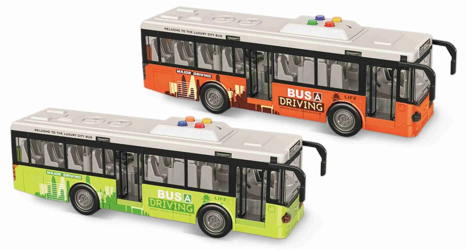 Bussi pitää ääntä ja siihen syttyy valot. Voit myös avata linja-auton ovet. Bussin pituus noin 28 cm ja korkeus noin 9 cm. Pakkaus sisältää kokeiluparistot (3 x LR44). Ikäsuositus: 3+ Otamme vastaan toiveita bussi väristä, mutta emme voi taata saatavuutta.