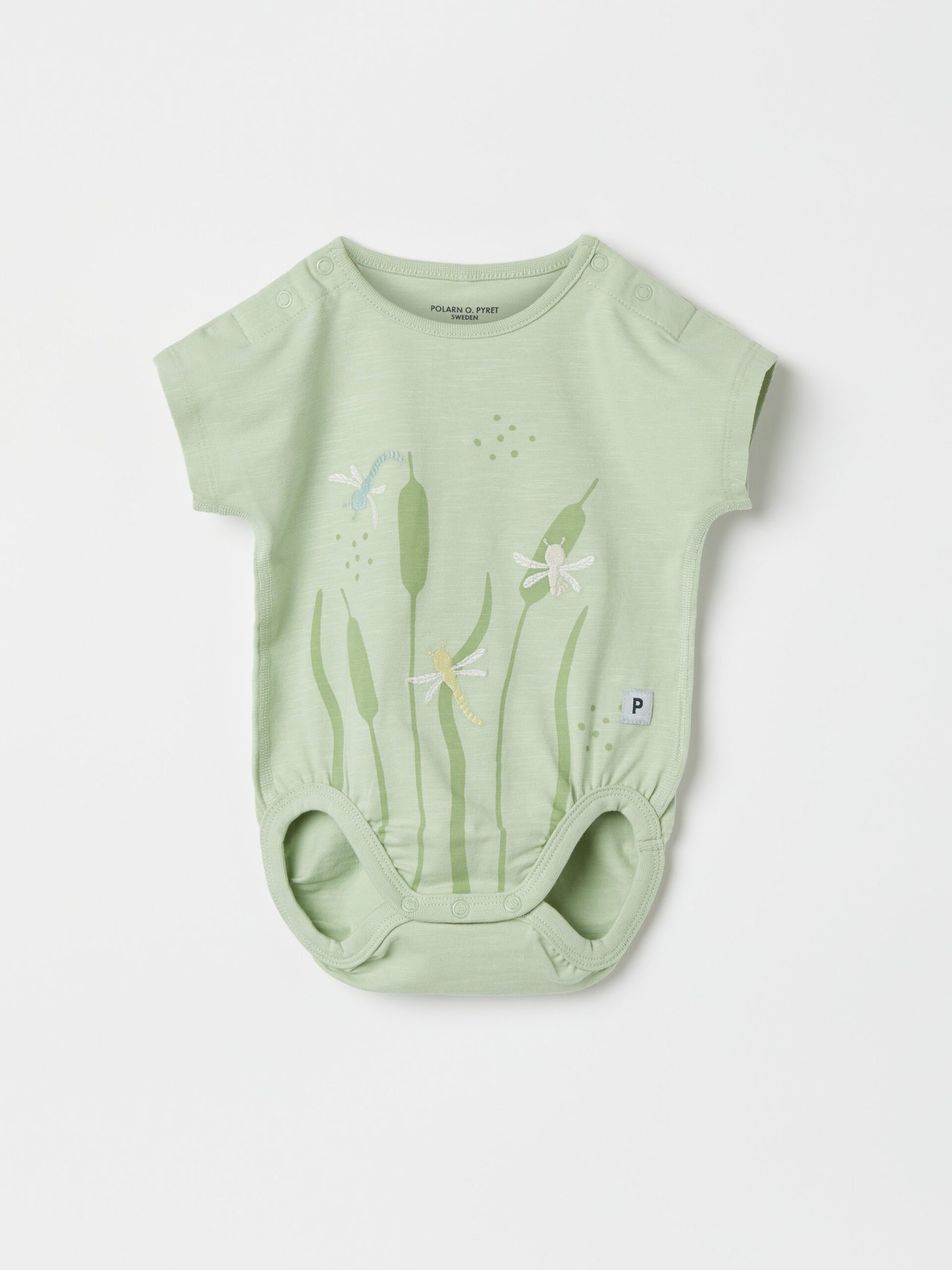 Lyhythihainen body brodeerauksella, sudenkorento