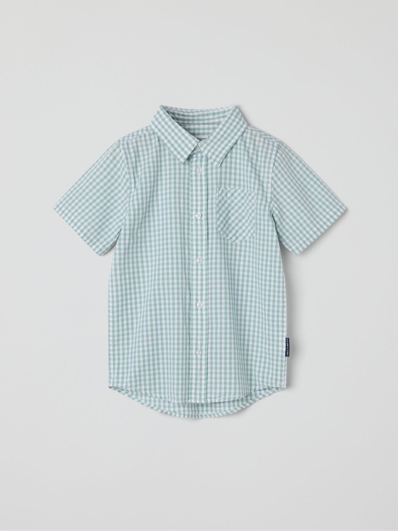 Raidallinen lyhythihainen paita luomupuuvillapopliinia – täydellinen sekä arkeen että kesäjuhliin! Paidassa on rintatasku ja edessä nappikiinnitys.