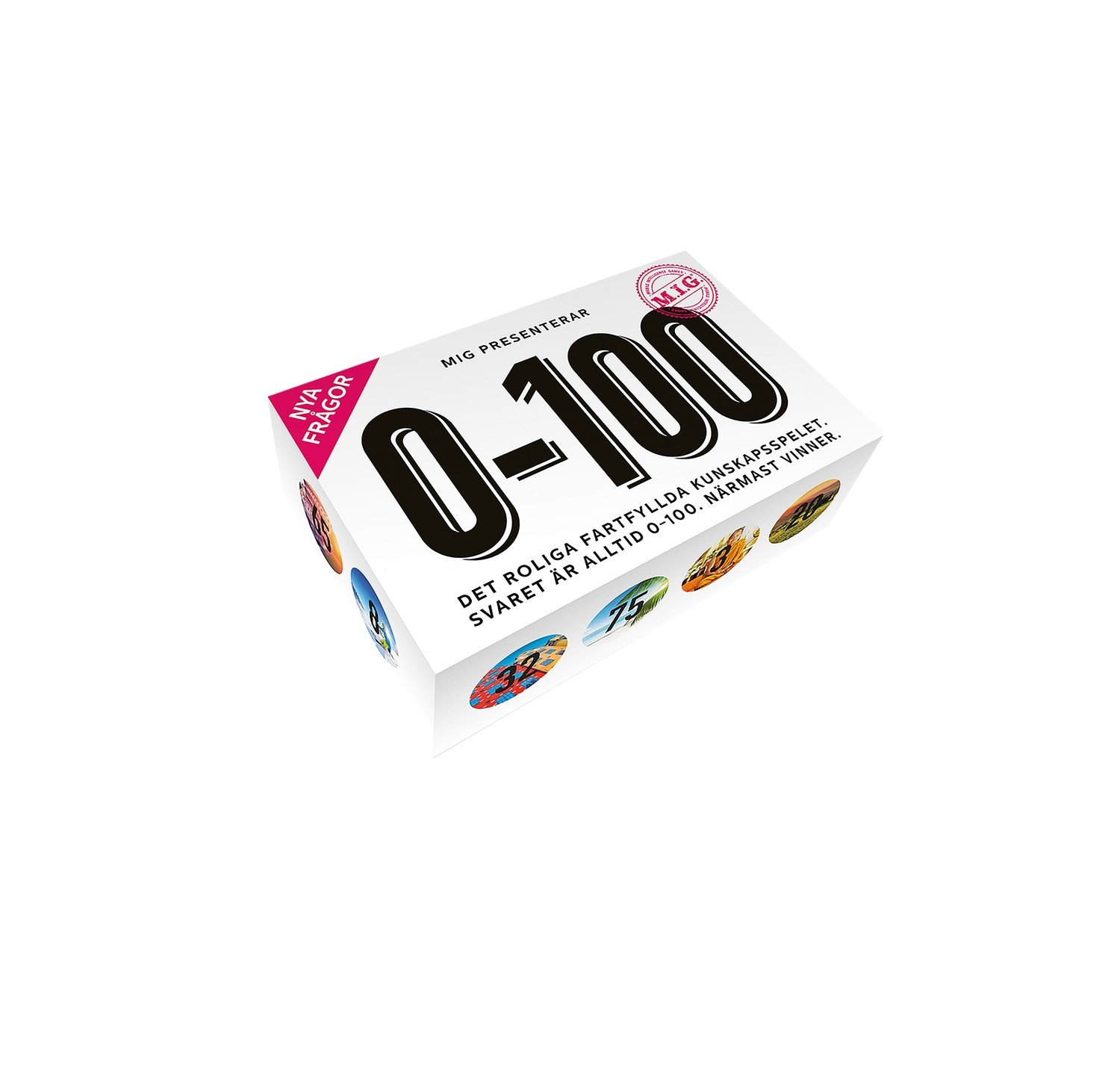 MIG 0-100 är ett roligt och snabbspelat frågespel där du alltid har ett svar. Svaret är alltid ett tal mellan 0 och 100. Om du inte kan får du gissa och närmast rätt svar vinner. Mini 0-100 i ett litet format som är enkelt att ta med sig vart man än ska.