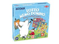 Muumiteemaisia suosikkipelejä kolmin kerroin.Yhteistä puuhaa kolminkerroin. Kolme superhauskaa suosikkipeliä Lotto, Domino ja Memo yhdessä paketissa. Kaikkien rakastamilla muumihahmoilla kuvitetut klassikot tarjoavat innostavia pelihetkiä vauvasta vaariin. Peli on valmistettu suomessa.Pakkaus sisältää: 4 kuva-alustaa, 72 laattaa Lottoon ja Memoon, 36 Domino-laattaa sekä ohjeet.