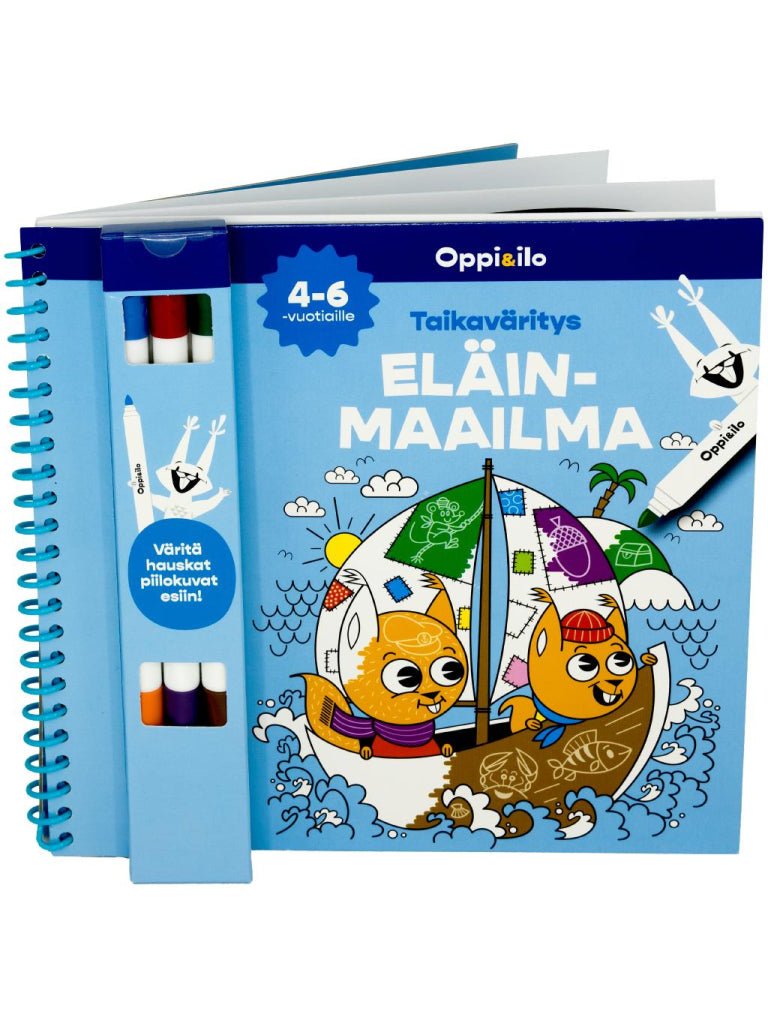 Väritä piilokuvat esiin! Puuhakirjassa etsitään esineitä ja eläimiä värittämällä kuva mukana olevilla tusseilla (3 kpl). Ikäsuositus: 4–6 v
