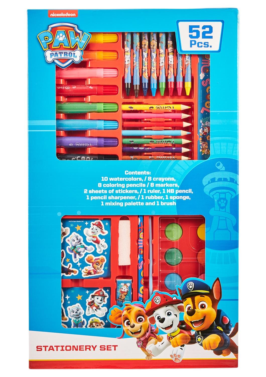 Paw Patrol -maalauslaatikko muovia, 52 osaa. Laatikko sulkeutuu napilla ja siinä on kantokahva. Täydellinen ottaa mukaan minne menet tai käyttää kotona työpöydälläsi. Paw Patrol -aiheiset kuviot edessä ja takana sekä osissa sisällä.
