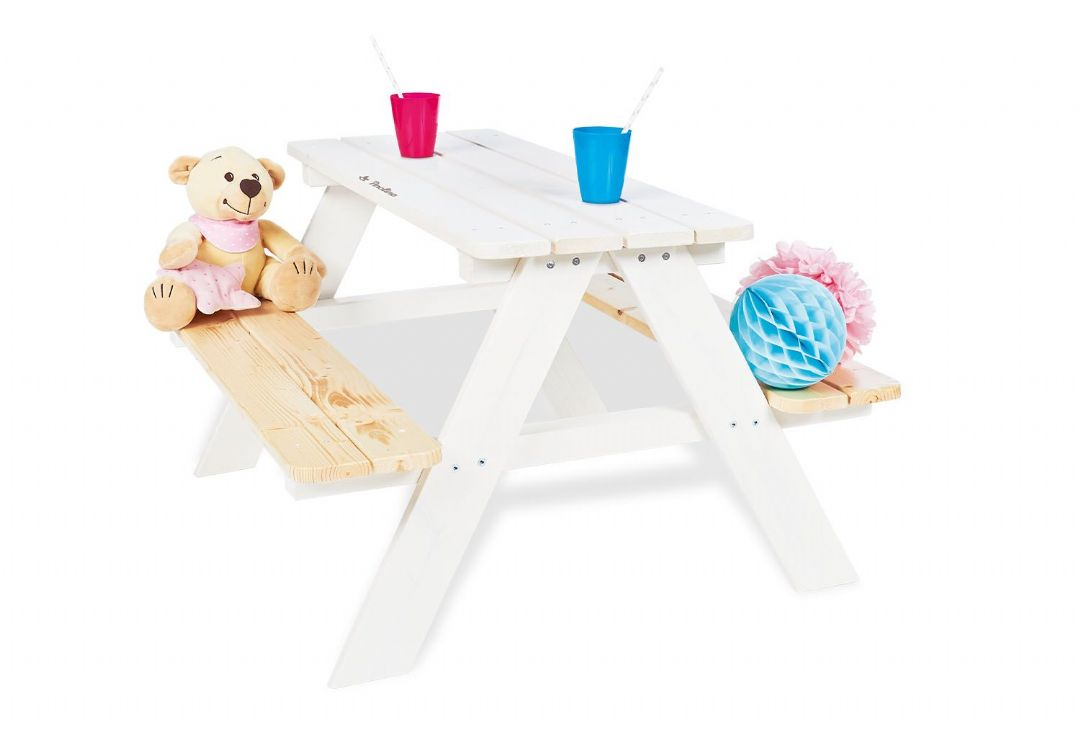 Nicki-penkkisarja Pinolinon brändiltä on fantastinen lelu lapsille, jotka haluavat piknikkokemuksen puutarhassa, parvekkeella tai terassilla. Tämä valkoinen penkkisarja mahtuu neljälle lapselle ja on ihanteellinen istua ja nauttia kulhosta popcornia tai lasillisesta mehua.Materiaali on täysin massiivista kuusipuuta, joka on valkoista ja kirkkaasti lasitettua, mikä antaa kauniin ja täydellisen lopputuloksen. Lisäksi se on kestävä ja kestävä, mikä tekee siitä sopivan lapsille kaiken ikäisille.Penkkisarjalla on älykäs koko, joka sopii täydellisesti pienten lasten kehoihin. Se voidaan myös helposti poistaa ja sijoittaa käytön jälkeen, koska sen mitat ovat vain 89 cm x 75 cm x 50 cm.Tämä piknikpenkkisetti on epäilemättä hitti lasten keskuudessa, jotka rakastavat istua ja syödä ja juoda yhdessä viihtyisässä ympäristössä. Se on myös loistava tapa kannustaa lapsia viettämään enemmän aikaa ulkona ja aktiivisessa leikissä, koska se tarjoaa hyvän mahdollisuuden sosiaaliseen vuorovaikutukseen ja leikkiin.Lyhyesti sanottuna Pinolinon Nicki-penkkisarja on välttämätön jokaiselle perheelle, joka haluaa mukavan ja viihtyisän piknikkokemuksen puutarhassa tai terassilla. Se tarjoaa ihanteellisen koon, korkealaatuiset materiaalit ja kauniin suunnittelun. Tilaa oma Nicki-penkkisarja jo tänään ja koe ilo viihtyisästä ja kutsuvasta piknikistä kotipihasi sotkuinen pieni puutarha.
