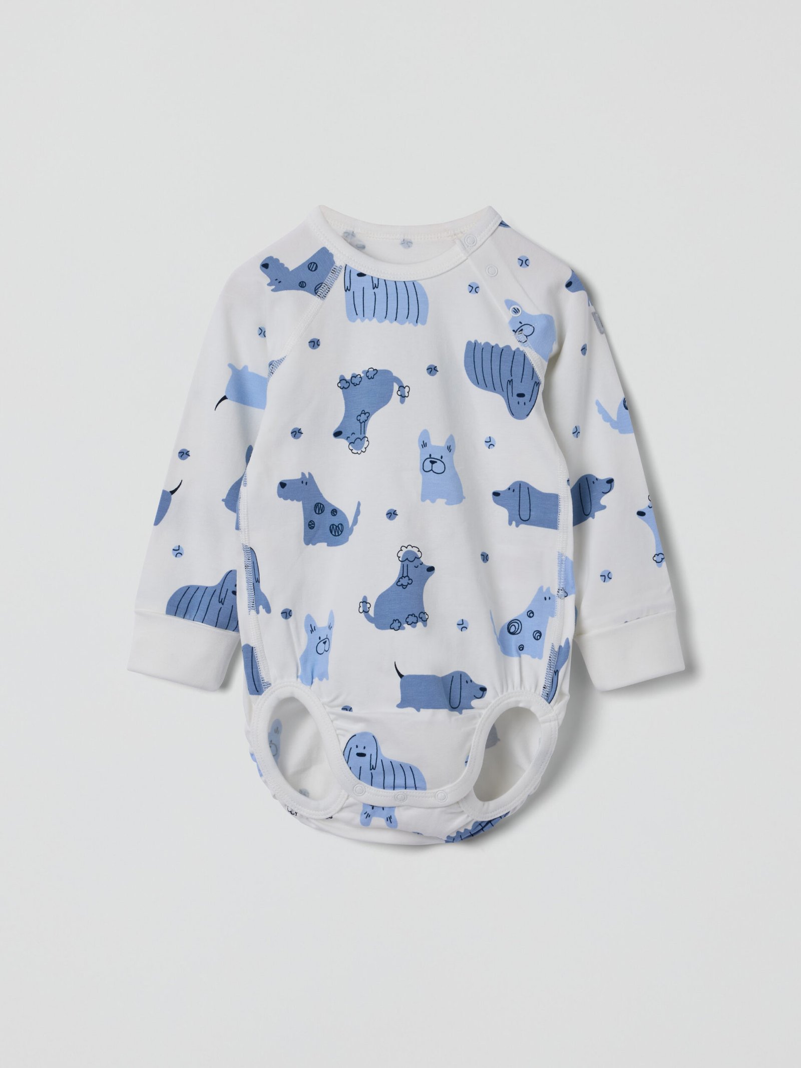 Pidennettävä kietaisubody 100 % luomupuuvillaa. Kuvioitu kokonaan koirakuviolla. Lisärivi neppareita haarassa ja taitettavat resorit hihansuissa, joten body kasvaa lapsen mukana!