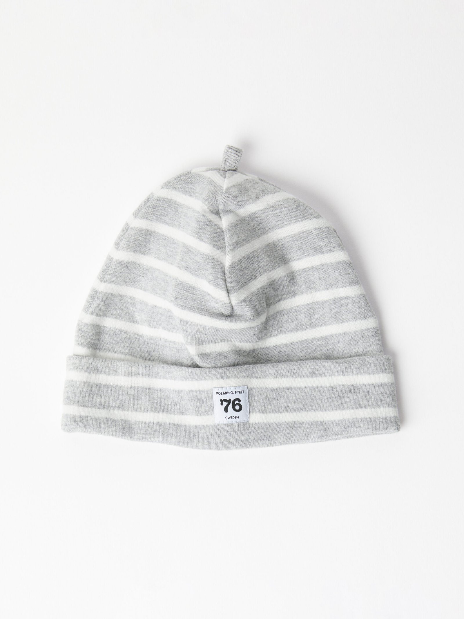 Vauvan raitapipo 100 % luomupuuvillaa. Pipossa on klassinen raitakuosimme sekä taite, jota voidaan säätää vauvan pään koon mukaan.