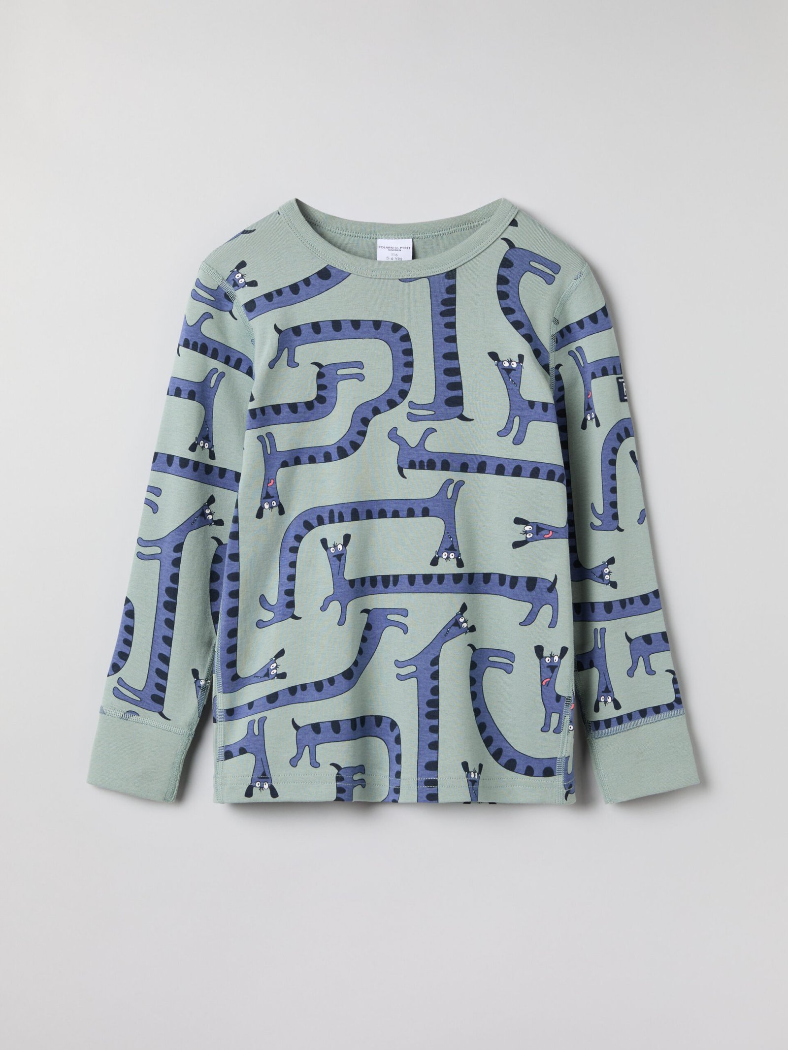 Paita 100 % luomupuuvillatrikoota. Kuvioitu kokonaan hauskalla koirakuviolla – pitkäikäinen suosikki!