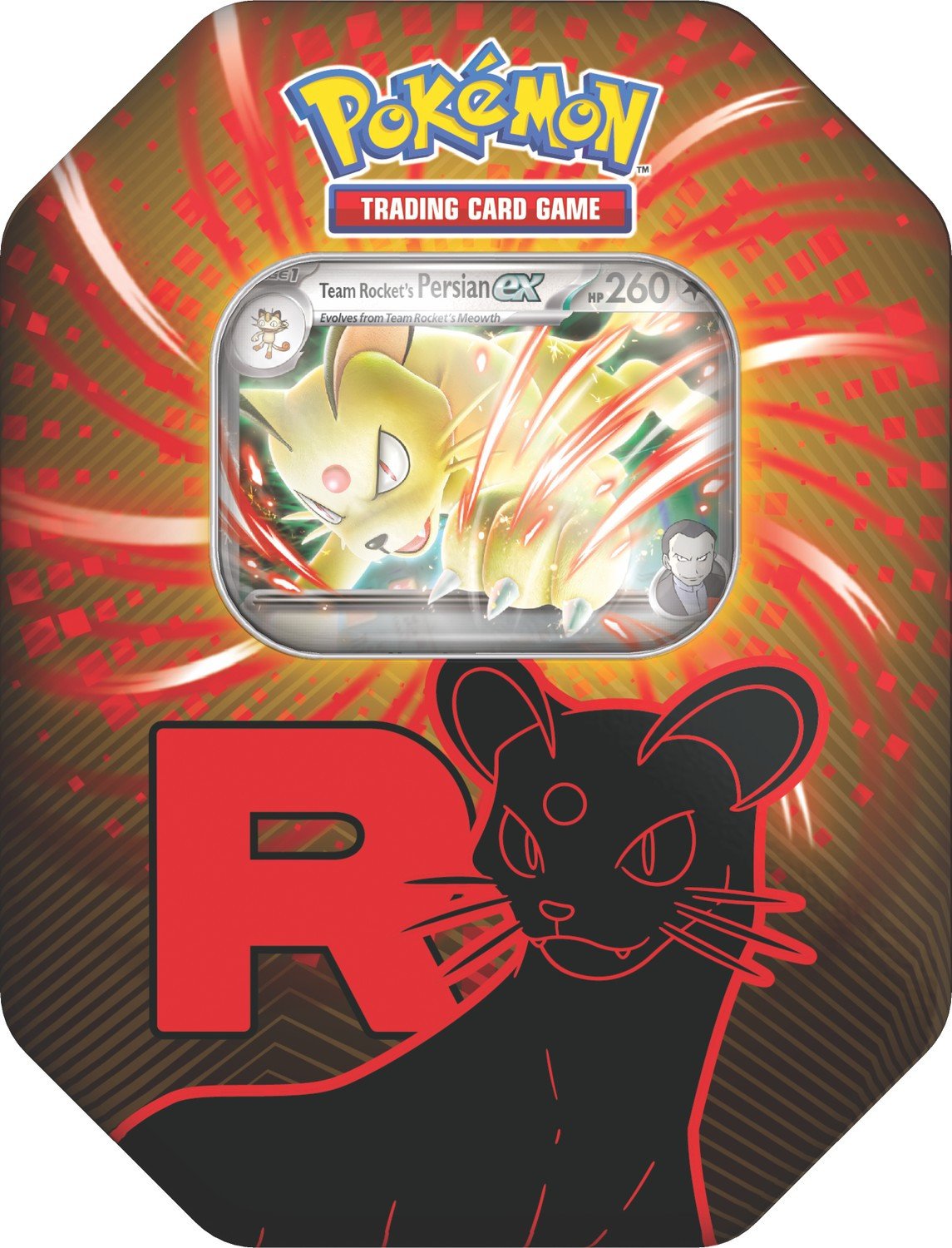 Tyylikäs peltirasia, Team Rocket, Pokémon-korteilla. Avaa pakkaus ja salaiset paketit, lajittele kuvat, kerää ne ja vaihda ystäviesi kanssa. Laatikko on täydellinen suosikkikorttiesi keräämiseen.