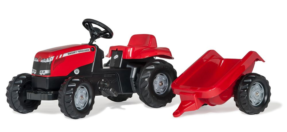 Punainen Massey Ferguson -traktori perävaunulla Rolly Toysilta on täydellinen lelu 2,5-5-vuotiaille lapsille. Tyylikäs punainen traktori ilahduttaa varmasti jokaista pientä maanviljelijää, joka haaveilee työskentelemisestä pellolla. Traktori on polkimilla käytettävä, mikä antaa lapsille mahdollisuuden harjoitella moottorisia taitojaan samalla kun heillä on hauskaa. Traktorissa on perävaunu, johon lapset voivat lastata suosikkilelunsa ja ajaa sitä ympäri pihamaata. Lisäksi traktorissa on avoin jäähdytin, joka antaa mahdollisuuden oppia siitä, mitä koneessa on sisällä. Suojatulla ketjulla turvallisuus on taattu, ja vaikka lapset ajavatkin nopeasti, voit olla rauhallinen tietäessäsi, että heidän pienet jalat ovat suojassa. Traktori on suunniteltu niin realistiseksi kuin mahdollista, ja lapset rakastavat polkemista ja ajamista. Mitat 134 x 47 x 52 cm tekevät traktorista täydellisen pihalle tai terassille, jossa lapset voivat leikkiä tuntikausia. Paino 7,8 kg tekee traktorin siirtämisestä paikasta toiseen tarpeen mukaan helppoa. Yhteenvetona voidaan sanoa, että Punainen Massey Ferguson -traktori perävaunulla Rolly Toysilta on upea lelu 2,5-5-vuotiailla maanviljelijälapsille. Todentuntuinen ja kestävä rakenne on suunniteltu antamaan lapsille monien vuosien hauskaa leikkiä, samalla kun heidän motoriset taitonsa kehittyvät turvallisessa ympäristössä.