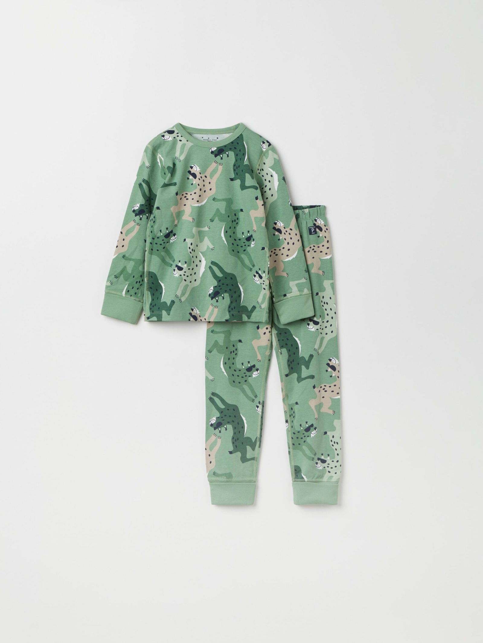 Kaksiosainen pyjama pehmeää luomupuuvillaa. Hieno ilveskuvio. Paidan hihansuissa on erityspitkät resorit, jotka voi taittaa ylös ja alas. Housuissa on joustava vyötärö ja erittäin pitkät resorit lahkeensuissa.