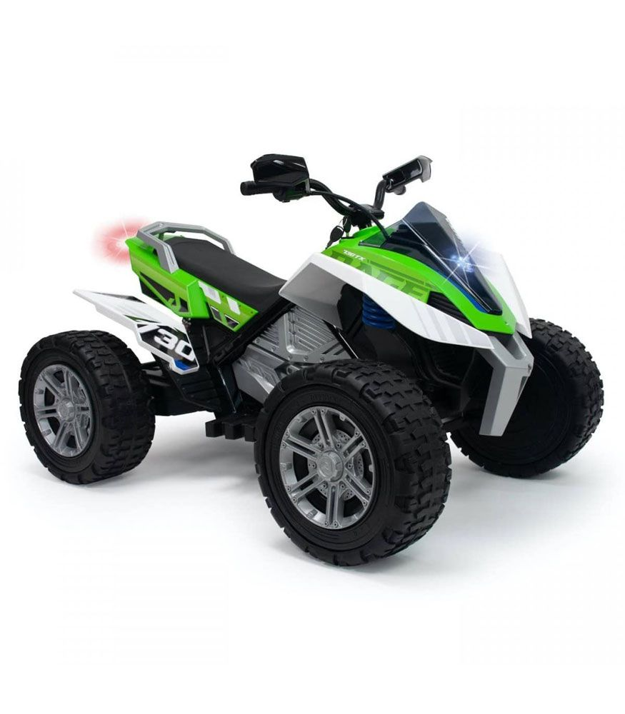 Quad Rage -sähkömoottoripyörä 24V Injusa-merkiltä on täydellinen lelu lapsille, jotka rakastavat nopeutta ja jännitystä. Tämä sähköinen quad on suunniteltu erilaisilla toiminnoilla, jotka tekevät siitä turvallisen ja vakaan ajokokemuksen lapsille.Ajoneuvon iskunvaimennus ja kumirenkaat antavat sille hyvän pidon alustassa, mikä lisää vakautta ja turvallisuutta. Quad Rage -sähkömoottoripyörän 24V renkaat on valmistettu pistosuojatusta EVA-kumimateriaalista, joka varmistaa, että lapset voivat kulkea turvallisesti ja ilman huolta.Toinen tärkeä toiminto tässä sähkömoottoripyörässä on sen edessä ja takana olevat valot, jotka tekevät siitä näkyvämmän ja turvallisemman liikenteessä. Lisäksi sillä on kaksi nopeusasetusta ja peruutusvaihde, mikä antaa lapsille mahdollisuuden hallita ajoneuvoa turvallisesti.Quad Rage -sähkömoottoripyörä 24V on myös helppo ja käytännöllinen ottaa mukaan matkalle, koska se on helppo käsitellä ja sitä voi kuljettaa useimmissa autoissa. Lopuksi mukana tulee kaksi akkua ja laturi, mikä tekee siitä helppoa lapsille ladata ja käyttää sähkömoottoripyörää heidän halutessaan.Joten jos etsit hauskaa ja jännittävää lelua lapsellesi, joka myös heijastaa turvallisuutta liikenteessä, Quad Rage -sähkömoottoripyörä 24V Injusalta on varmasti hyvä valinta.