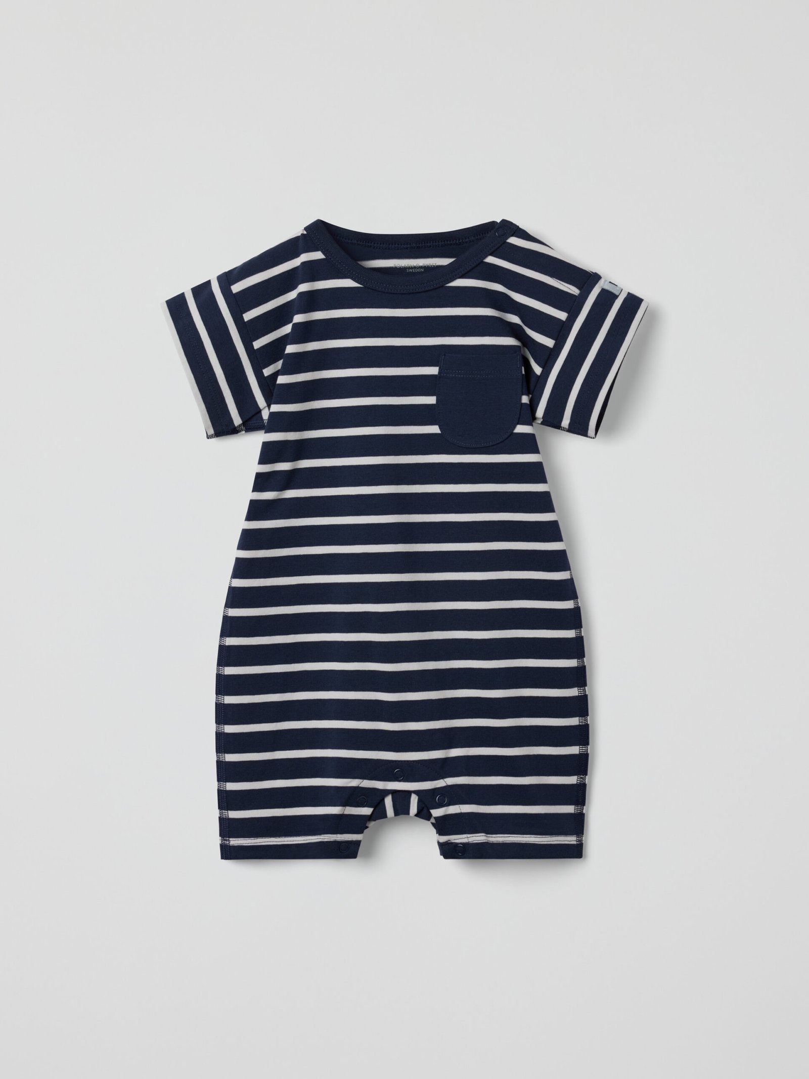 Vauvan raidallinen haalari pehmeää luomupuuvillaa – todellinen kesäsuosikki! Erittäin pehmeät saumat, jotka ovat hellävaraiset herkälle iholle. Nepparit toisella olkapäällä ja haarassa helpottavat pukemista ja vaipanvaihtoa.