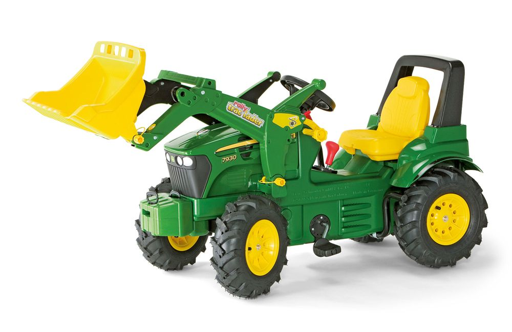 Rolly FarmTrac Premium John Deere 7930 on Rolly Toysin polkutraktori, joka sopii täydellisesti 3-vuotiaille ja vanhemmille lapsille. Traktorilla on etukuormaaja, joka voidaan irrottaa ja kallistaa kahvojen avulla, mikä antaa lapsille mahdollisuuden leikkiä erilaisten materiaalien kanssa ja kuljettaa niitä ympäriinsä. Traktorissa on avattava moottorin suojus, joka antaa lapsille mahdollisuuden nähdä moottori ja tutkia traktorin sisäosia. Traktorissa on myös suojattu ketju, joka estää lasten vaatteiden jäämisen jumiin koneistoon.Rolly FarmTrac Premium John Deere 7930:ssä on äänettömät renkaat, jotka mahdollistavat hiljaisen ajon sekä sisällä että ulkona leikittäessä. Traktorin säädettävä istuin ja ilmakumirenkaat takaavat mukavan ajon ja mahdollistavat sen, että lapset voivat käyttää traktoria pitkään ilman väsymystä.Traktorissa on erilaisia vaihteita ja jarruja, joiden avulla lapset voivat harjoitella ajotaitoja ja traktorin hallintaa. Rolly FarmTrac Premium John Deere 7930 on kestävä ja tukeva traktori, joka on suunniteltu kestämään kaikenlaista leikkiä ja aktiviteetteja.Rolly FarmTrac Premium John Deere 7930 on kookas polkutraktori, joka on 146 x 52,5 x 77 cm ja painaa 19,7 kg. Traktori sopii 3-8-vuotiaille lapsille, jotka voivat nauttia monista hauskoista ja luovista leikeistä. Kaiken kaikkiaan Rolly FarmTrac Premium John Deere 7930 on upea polkutraktori, joka kestää kaikenlaisia leikkejä, samalla kun se antaa lapsille mahdollisuuden harjoitella ajotaitojaan ja luovuuttaan. Tämän upean John Deere -muotoilun ja monien ominaisuuksien ansiosta tämä traktori on iloinen ja vaikuttava lisä jokaiseen lastenhuoneeseen tai leikkipaikalle.
