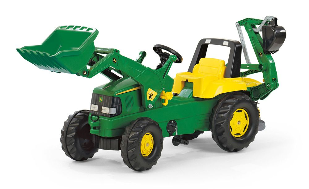 Rolly Junior John Deere -traktori on jännittävä ja hauska lelu 3-8-vuotiaille lapsille. Tämä Rolly Toysin polkuauto on täydellinen niille, jotka haluavat leikkiä maanviljelijää ja omistaa oman ajoneuvon puutarhassa tai leikkipaikalla.Traktori on varustettu kaivinkoneen takana ja edessä olevalla kippilapiolla, jonka voi kallistaa kahvan avulla. Se antaa lapsille mahdollisuuden kaivaa ja siirtää maata, kiviä ja hiekkaa omalla pienellä rakennustyömaallaan. Traktorin jäähdyttimen huppu voidaan myös avata, mikä antaa lapsille mahdollisuuden leikkiä moottoria ja mekaniikkaa.Turvallisuus on suuri painopiste Rolly Junior John Deere -traktorin valmistuksessa. Siksi se on varustettu suojatulla ketjulla, jotta lapset eivät vahingoittuisi ajon aikana. Renkaat ovat hiljaisia, mikä tarkoittaa, että kun lapset ajavat traktorilla ympäriinsä, siitä syntyy vähemmän melua. Traktorin istuin on säädettävä, joten se voidaan mukauttaa lapsen koon ja mukavuuden mukaan.Rolly Junior John Deere -traktori on suuri lelu, jonka mitat ovat 164,5 x 53 x 76 cm ja paino on 13 kg. Suuret koot mahdollistavat lasten istua hyvin ja vakaa traktorilla ajettaessa ja leikissä.Kaiken kaikkiaan Rolly Junior John Deere -traktori on fantastinen lelu lapsille, jotka rakastavat olla aktiivisia ja luovia puutarhassa tai leikkipaikalla. Se on korkealaatuinen ja turvallinen tuote, joka antaa sekä lapsille että vanhemmille täyden nautinnon.