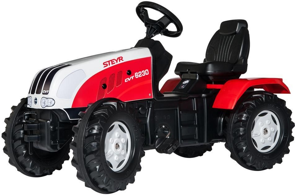 RollyFarmtrac Classic Steyr CVT 6225 on upea ja kestävä polkutraktori Rolly Toys -merkiltä, joka sopii täydellisesti 3-8-vuotiaille lapsille. Tämä traktori ei ole vain hauskaa leikkikalu, vaan on suunniteltu tarjoamaan lapsellesi realistisen ja autenttisen traktorikokemuksen.Traktorissa on avattava jäähdyttimen kansi ja suojattu ketju, joka varmistaa, ettei lapsesi vahingoitu leikkiessään. Hiljaiset renkaat takaavat hiljaisen ja miellyttävän ajokokemuksen, kun taas säädettävä istuin mahdollistaa traktorin säätämisen lapsesi korkeuteen ja kokoon sopivaksi.Tämä 105 cm:n mittainen, 51 cm:n levyinen ja 60 cm:n korkea traktori on täydellinen koko pienille lapsille, jotka haluavat tutkia maailmaa. Sen paino on 10,3 kg, joten se on helppo hallita ja ajaa.RollyFarmtrac Classic Steyr CVT 6225:n avulla lapsesi voi käyttää mielikuvitustaan ja roolileikkiä uneksimaan elämästä maaseudulla. Se on hauska ja opettavainen lelu, joka samalla mahdollistaa lapsesi tasapaino- ja koordinaatioharjoitukset. Osta tämä polkutraktori tänään ja tarjoa lapsellesi unohtumattoman leikin!