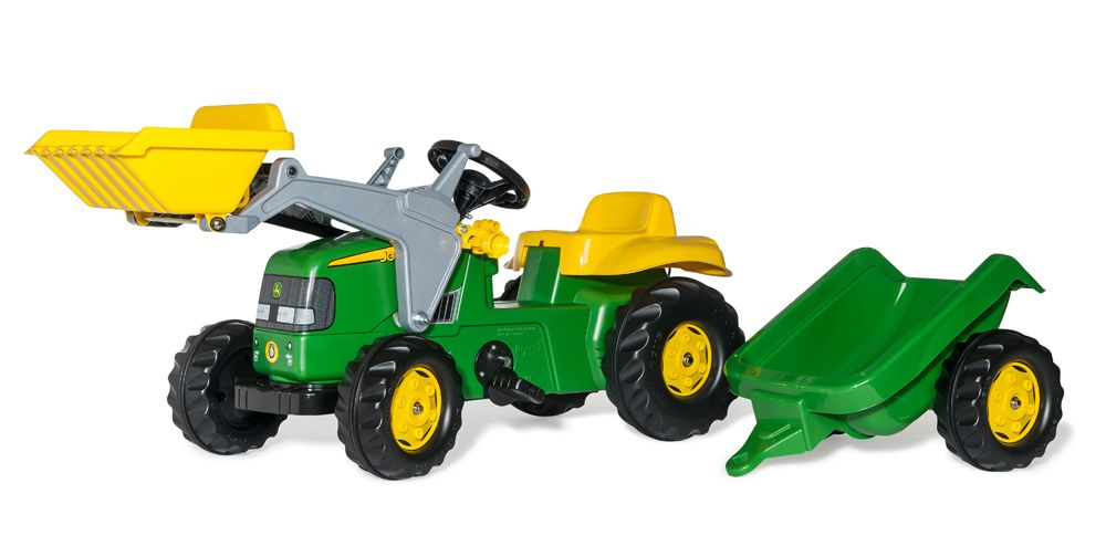 RollyKid John Deere on täydellinen polkutraktori 2,5–5-vuotiaille lapsille. Tämä polkutraktori on ehdoton hankinta kaikille pienille traktori- ja maatalouskoneiden harrastajille. Tämä malli on varustettu kätevällä etukauhalla, joka voidaan kallistaa kätevän kahvan avulla.Tämä RollyKid John Deere on korkealaatuinen ja pitkäikäinen. Traktori on vahva rakenteeltaan ja valmistettu kestävästä muovimateriaalista, joten se kestää naarmuja ja muita vaurioita. Traktorin jäähdyttimen etukansi voidaan avata lapsille lisähauskuudeksi.Polkutraktorissa on myös suojattu ketju, joten lapset eivät pääse jumiin siihen ja saa vammoja. Tämä polkutraktori painaa vain 9,2 kg ja on helppo kuljettaa ja liikutella.Lisäksi tämä RollyKid John Deere tulee perävaunun kanssa, joka voidaan yhdistää traktoriin ja sitä voidaan käyttää lelujen ja hiekkalaatikoiden tai puutarhan lehtien ja oksien kuljettamiseen. Perävaunun takaosa voidaan laskea ja etukauha voidaan kallistaa, joten lastaus ja purku on helppoa ja kätevää.Tämä RollyKid John Deere on erinomainen valinta pienille maanviljelyksen harrastajille. Sen kestävän rakenteen, kätevän etukauhan ja siihen kuuluvan perävaunun ansiosta tämä polkutraktori on täydellinen lelu lapsille, jotka haluavat leikkiä maatalouskoneilla ja kuljettaa asioita paikasta toiseen puutarhassa tai leikkipaikalla.