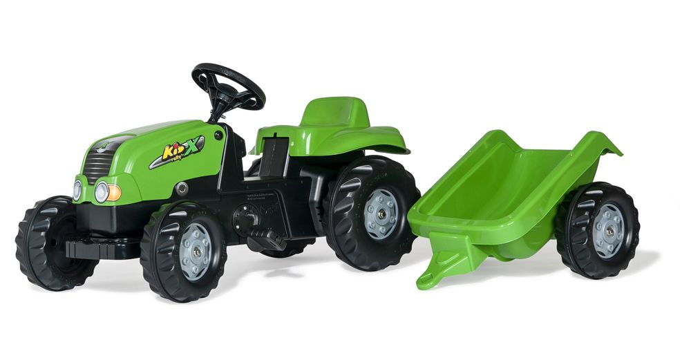 RollyKid-X Traktorilla ja perävaunulla on upea leikkikone 2,5-5-vuotiaille lapsille. Tämä polku-traktori on lasten suosikki, sillä sen ajamisessa on hauskaa ja jännitystä, samalla kun se antaa realistisen ja autenttisen tunteen kuin ajaisi oikeaa traktoria.Traktori on korkealaatuista ja sillä on hieno, todellinen ulkonäkö ja tunne. Sen koko on 134 x 47 x 52 cm ja paino 7,8 kg, mikä tekee siitä helpon käsitellä 2,5-5-vuotiaille lapsille.Traktorilla on avoin etuosa, joten lapset voivat helposti nousta sisään ja ulos traktorista, ja se on turvallinen käyttää suojatun ketjun ansiosta, joka suojaa lasten jalkoja kosketukselta traktorin liikkuvien osien kanssa.Lisäksi traktori toimitetaan perävaunun kanssa, joka voidaan kiinnittää traktorin taakse. Perävaunu antaa lapsille mahdollisuuden kuljettaa leluja tai vastaavaa ajon aikana. Perävaunu voidaan helposti avata ja sulkea, jotta lasten lastaus ja purku on helppoa.RollyKid-X Traktori perävaunulla on upea lelu, joka ilahduttaa lapsia monien vuosien ajan. Se on hyvä tapa esitellä lapselle maataloutta ja maataloustyötä hauskalla ja vuorovaikutteisella tavalla. Polkutraktorin käyttö opettaa myös lapsille fyysistä aktiivisuutta ja harjoittelua.Kaiken kaikkiaan RollyKid-X Traktori perävaunulla Rolly Toys -brändiltä on upea lelu, joka varmistaa monien tuntien hauskaa leikkiä lapsellesi.
