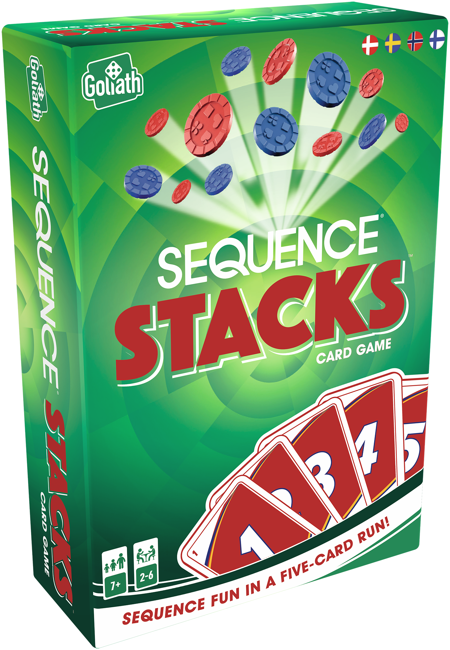 Sequence Stacks on jännittävä uusi versio klassisesta Sequence-pelistä! Tässä hauskalta tuntuvassa perhepelissä luot numerojärjestyksiä 1–5 joko kädessäsi olevilla korteilla tai lyhyistä pinoista. Kun saat valmiiksi järjestyksen, saat SEQUENCE‑tarjottimen joko punaisena tai sinisenä. Voittaja on se, joka kerää viisi tarjotinta, joista vähintään kaksi on punaista ja kaksi sinistä. Pelissä tarvitaan taktista ajattelua, sillä sinun pitää samalla estää vastustajiasi saamasta omia järjestyksiään valmiiksi. Toimintakortit tuovat peliin lisää vauhtia ja yllätyksiä: voit peittää toisia pelaajia, estää järjestyksiä tai hyödyntää muita hauskoja vaihtoehtoja. Helppoja sääntöjä ja nopeaa toimintaa – Sequence Stacks on täydellinen valinta perheen peli-illan viihteeksi!