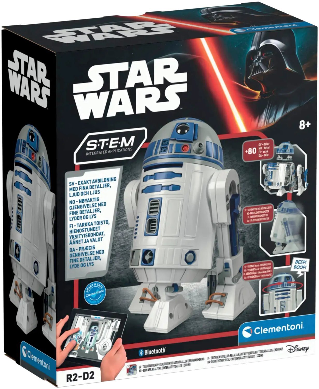 Kokoa R2D2 Tähtien sodasta. Robotti on ohjelmoitava ja interaktiivinen. Lataa sovellus saadaksesi lisää hauskanpitoa.