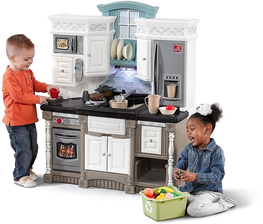 Unelmien keittiö kauniilla muotoilulla, joka muistuttaa oikeata keittiötäMonta tuntia hauskanpitoa ja leikkiäSisältää paljon tarvikkeita kuten ruokailuvälineet, kupit, kattilat, pannut ja muuta!