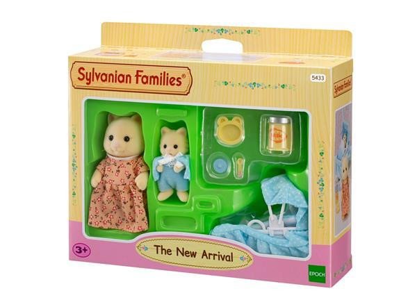 Sylvanian Familiesin kahden hahmon setti, kehto ja tarvikkeita.