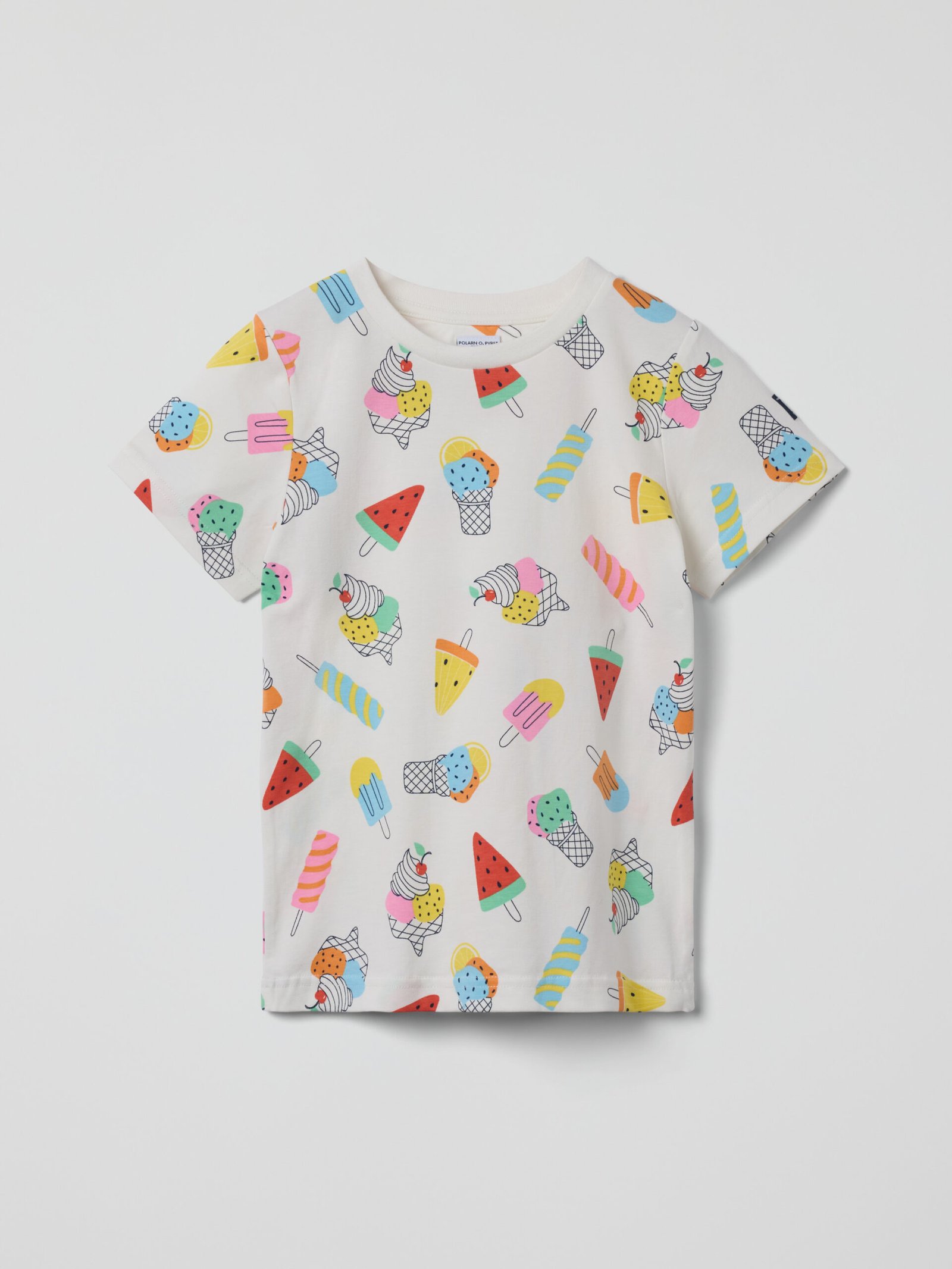 T-paita pehmeää luomupuuvillaa. Kuvioitu kokonaan jäätelökuviolla – pitkäikäinen kesäsuosikki, joka sopii kaikkiin tilanteisiin! Saatavilla useita värejä ja erilaisia kuvioita, jotka sopivat hyvin yhteen koko malliston kanssa. Löydä oma suosikkisi!